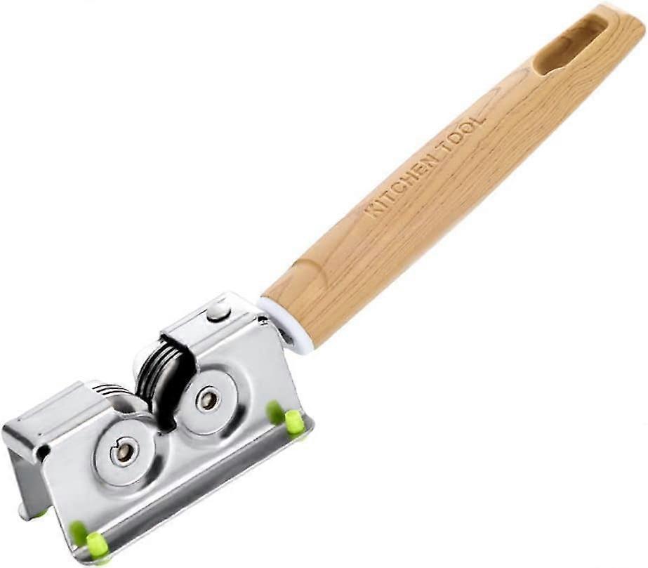 Package Includes 1x Manual Knife Sharpener Manual Knife Sharpener with Ergonomic Handle and Wheel Sharpening System Size: Whetstone part: L*H 6.8*3.5cm/2.68*1.38" handle length 12.5cm/4.92" Suitable for sharpning kitchen knives, fruit knives, cleavers, chef's knives, etc. Not suitable for serrated knives and ceramic knives Designed with a non-slip base, kitchen knife sharpener is kept in place, offering comfortable and safe control while you work Easy to use. You just place the dull blade on the sharpening slot and enjoy razor-sharpness in seconds