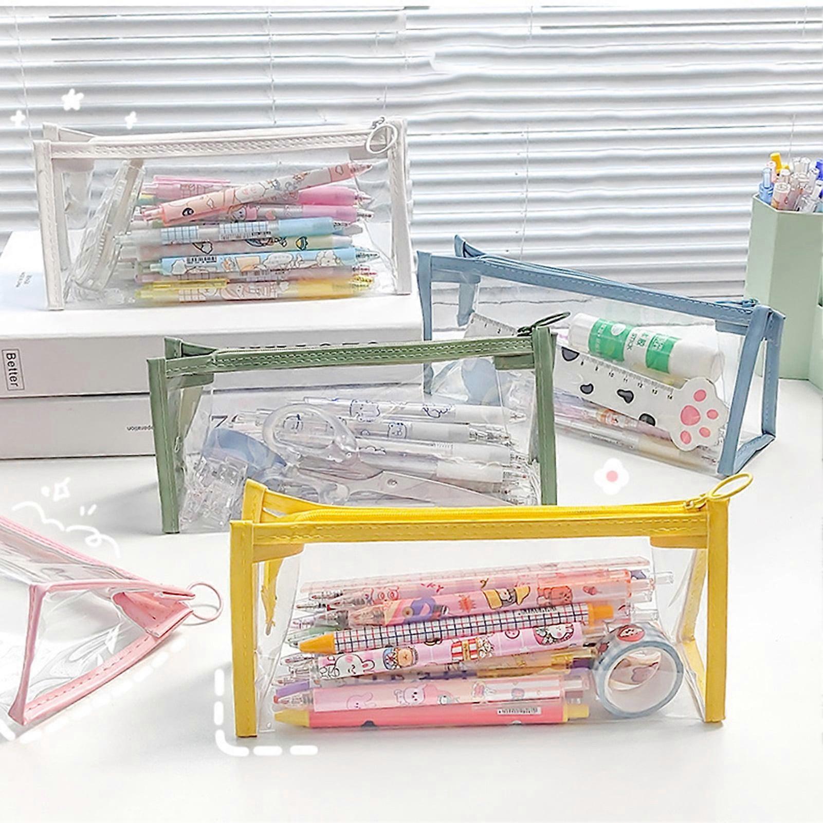 Sarkoyar Clear Pen Bag Multi-purpose Rectangle Shape Colored Zipper Stationery Bag Student Accessory
