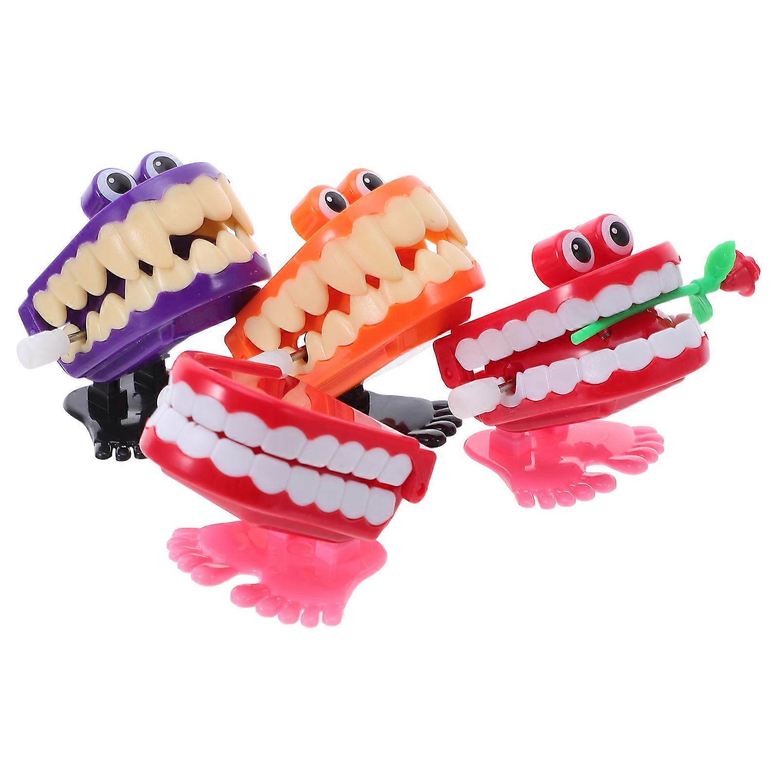 Fake Teeth Clockwork Toy 4Pcs Children Gift With Assorted Color And Frog Shape Perfect For Christmas Celebration