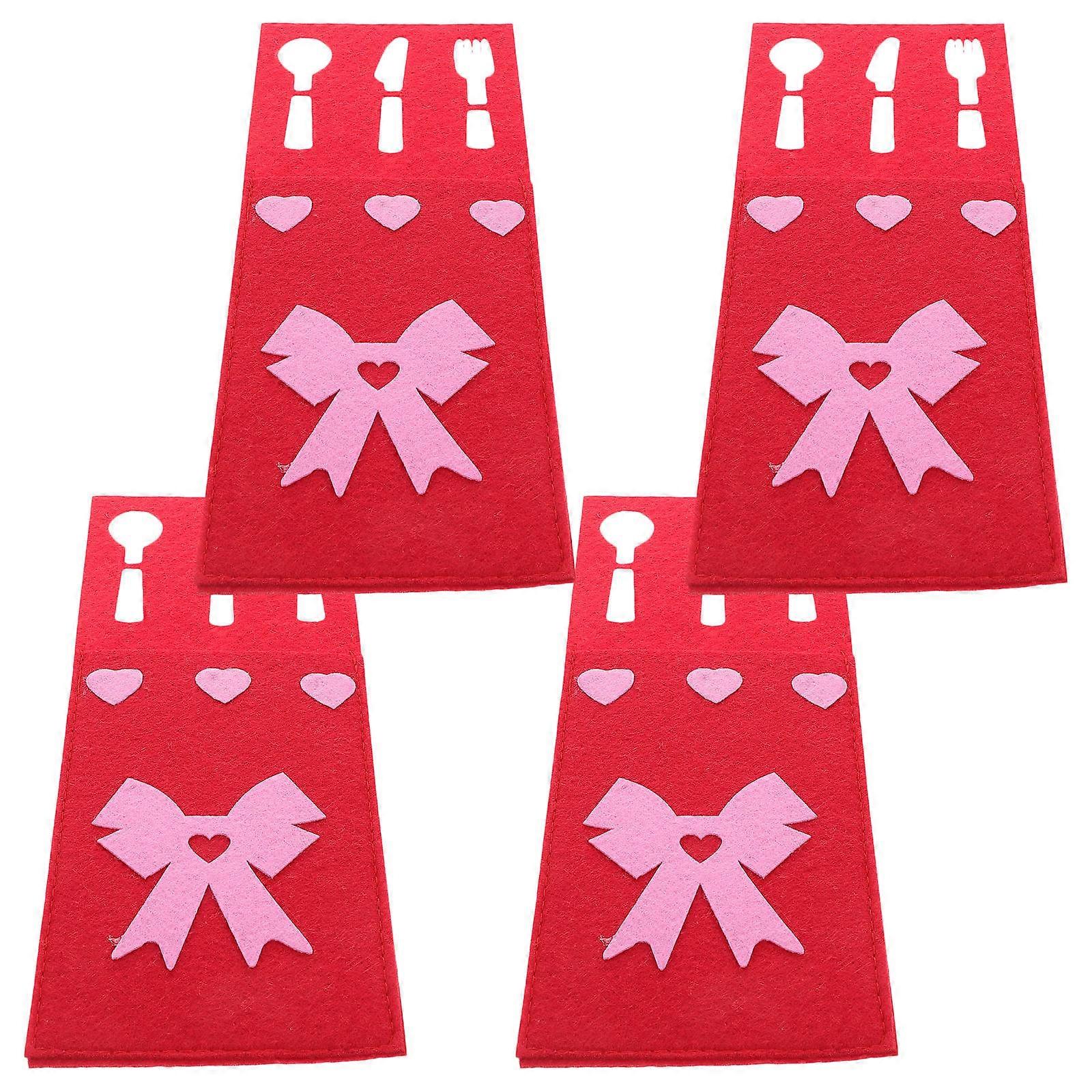 Valentines Day Silverware Holders Cutlery Bag Bow Shape Family Dinners Parties Non-Woven Fabrics Store Cutlery 4Pcs