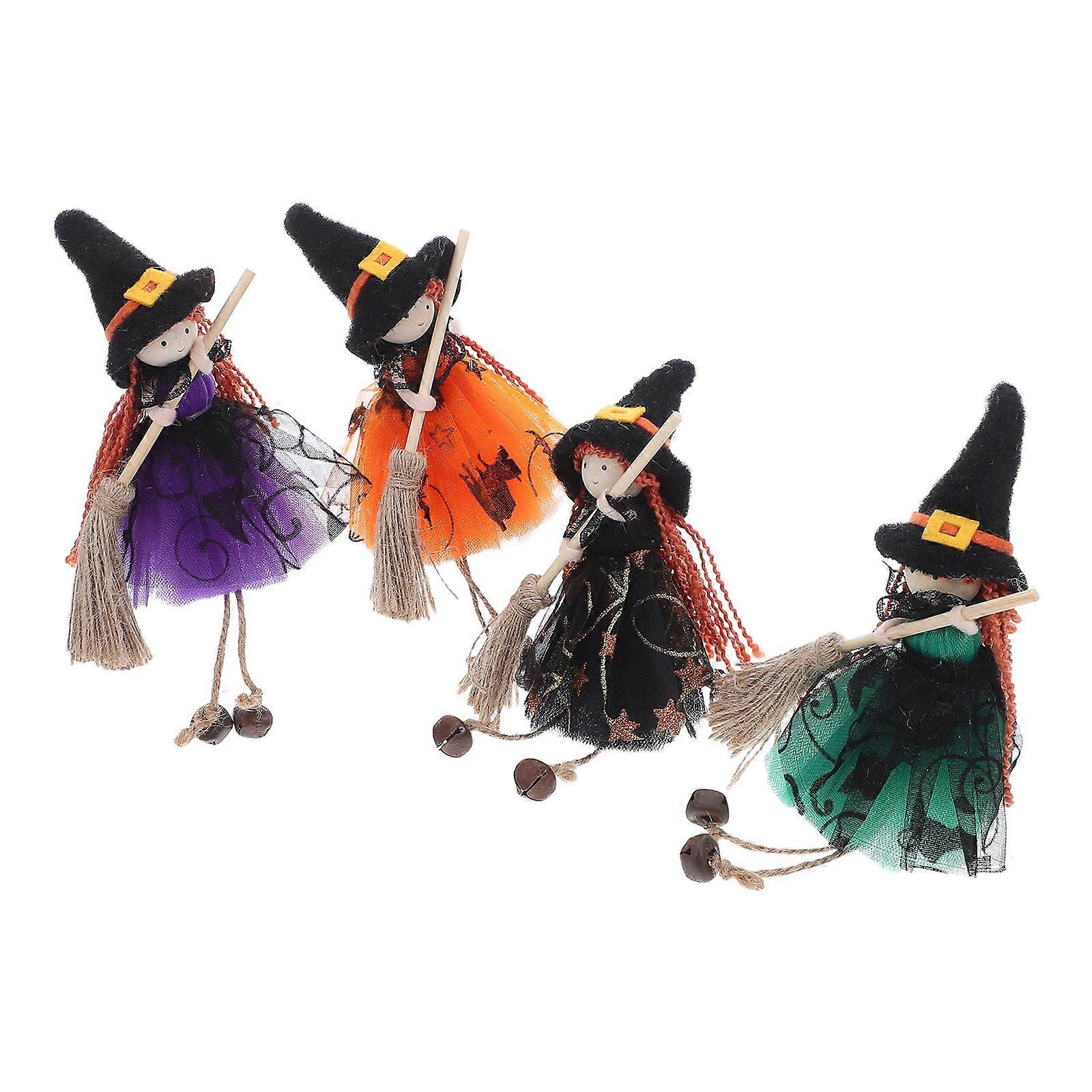 Halloween Witch Broom Doll Hanging Ornaments for Party 8Pcs Assorted Color