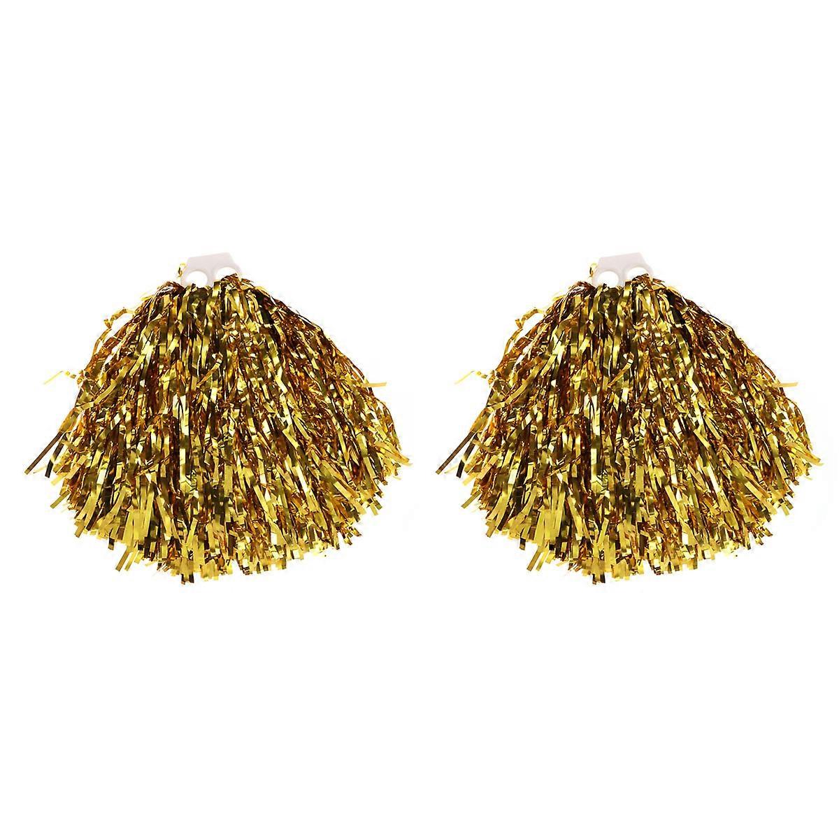 Gold Plastic Ring Team Hand Flower Cheer Poms for Sport Cheering 1Pair