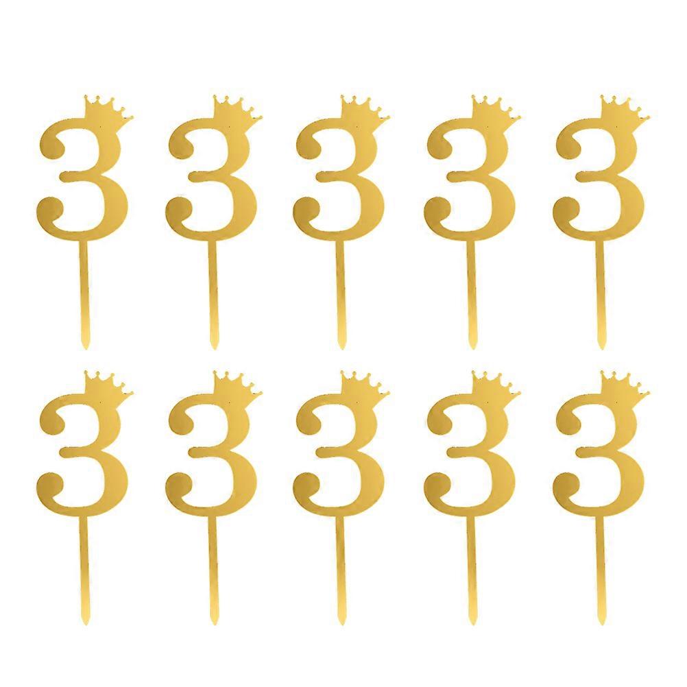 Golden Digital Birthday Cake Number Toppers for Party 10Pcs Acrylic