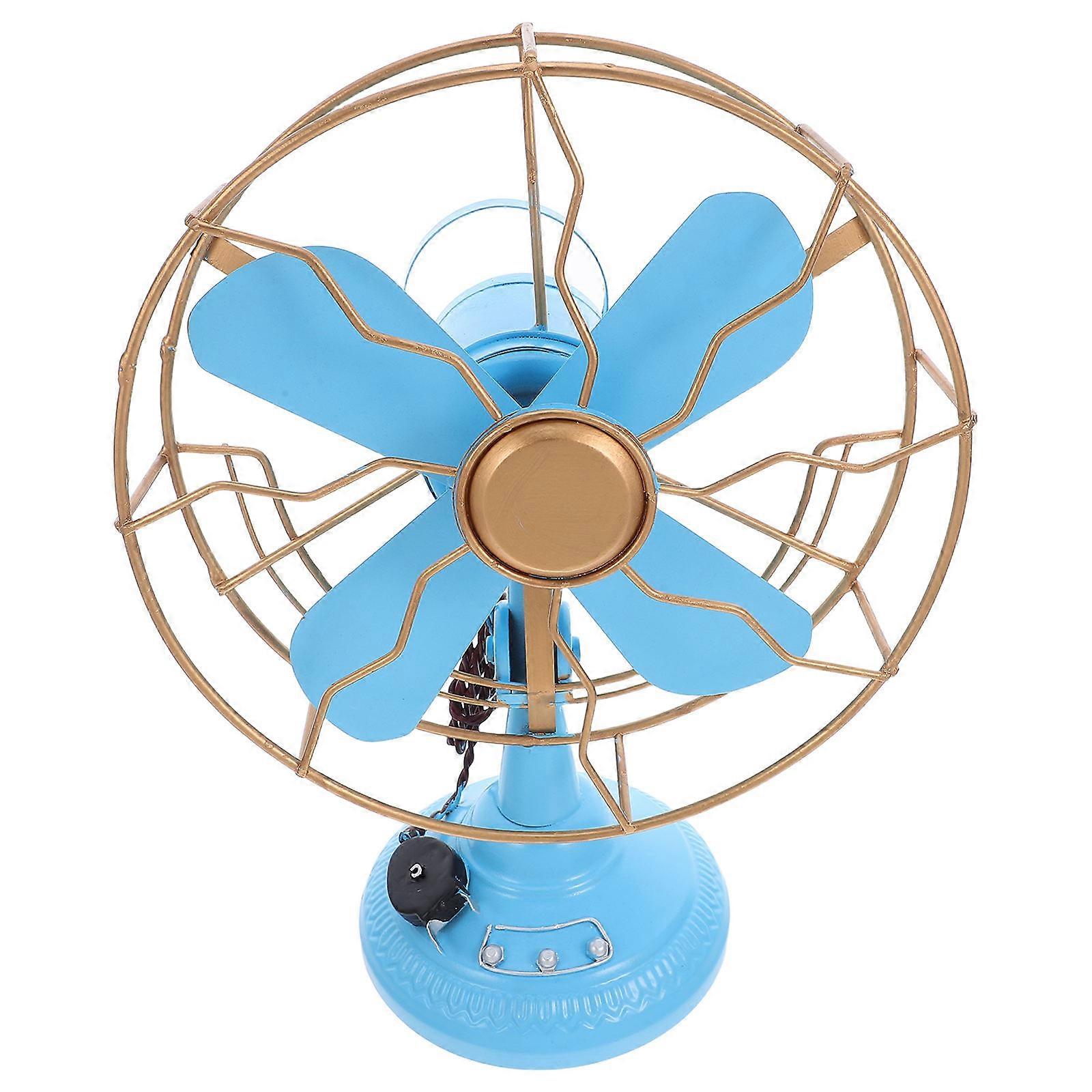 Vintage Fan Model for Decoration Blue Iron Metal Table Fan Sculpture