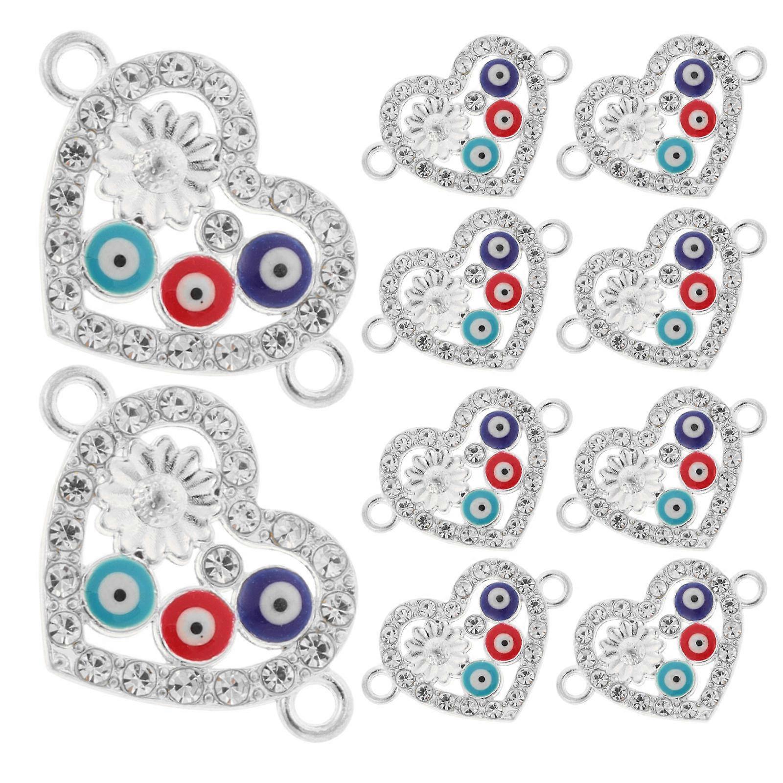 Silver Alloy Evil Eye Heart Charms for DIY Jewelry Making 20Pcs