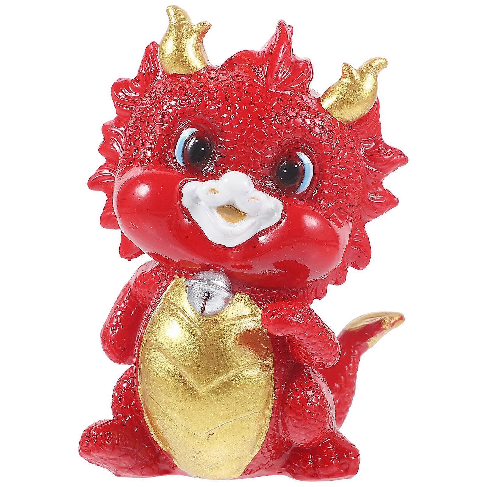 Cartoon Dragon Figure 4Pcs Resin Decoration For Home Office Cabinet Chinese New Year Gift Red