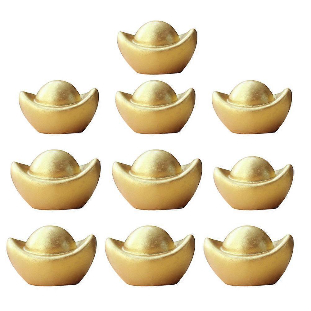 This item is a golden ingot decor, which is made of . Unique appearance gives comfortable decoration experience. This is a perfect additions' decoration to your home or office, living room, kids' room. This is an amazing ornament, this adorable ornament will give a happy feeling. Features - Color: Golden. - Material: Resin. - Size S: About 2.00X1.20X1.00cm/0.79X0.47X0.39inch. - Size L: About 2.50X1.50X1.00cm/0.98X0.59X0.39inch. - Quality materials and production technology, strong and . - and lovely design, workmanship. - The model is very lifelike and lovely. You can put it anywhere in your home to add atmosphere. - Perfect for giving as a gift at a holiday party. - The shape of , a symbol of wealth, is very suitable for the Spring Festival atmosphere. Package list: 30 x model decorations