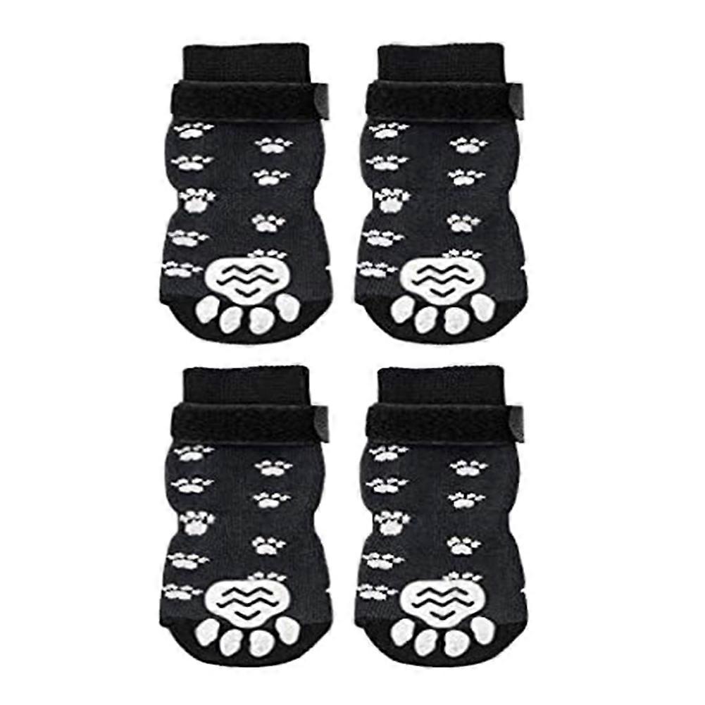 Anti-Slip Dog Socks 4pcs Paw Protector Traction Control Adjustable Indoor Wear Knitted Pet Socks with Rubber Reinforcement