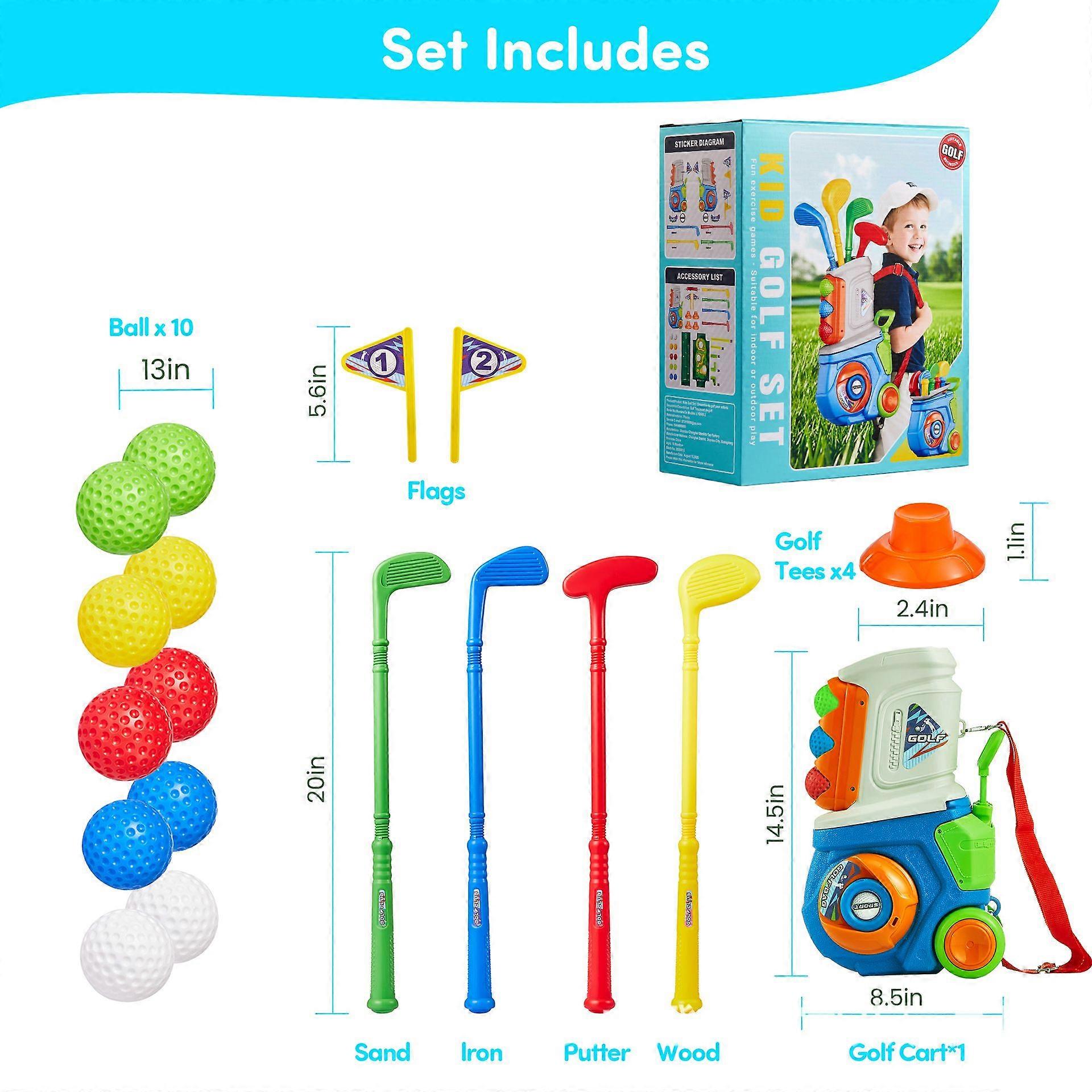 Kids Golf Practice Set Indoor Outdoor Sports Toy Push Cart