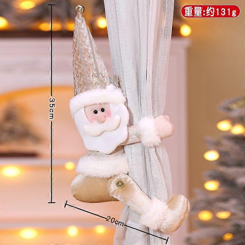 Christmas Curtain Holdbacks Decorations Champagne Velvet Tiebacks Santa Snowman Reindeer Home Holiday Decor