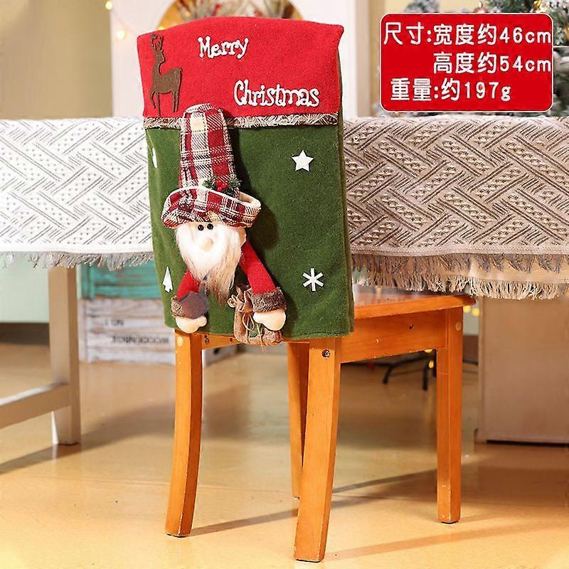 Christmas Table Chair Covers Cartoon Santa Claus Snowman Red Green 3D Plush Chair Covers Home Decor Waterproof Washable