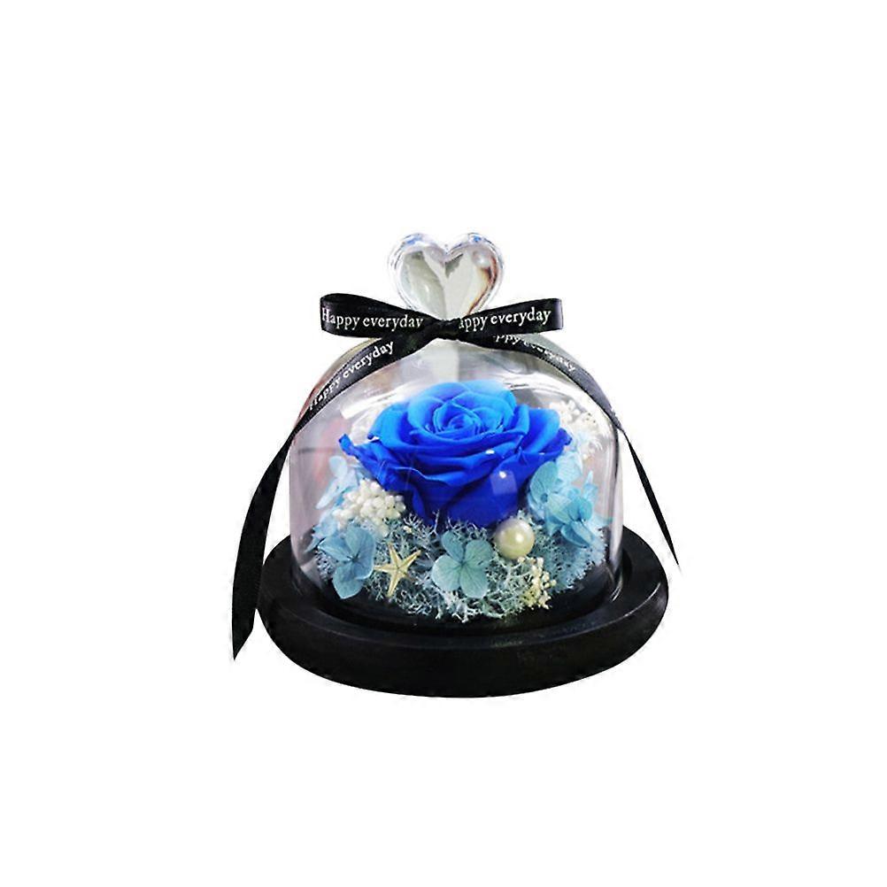 Everlasting Flower Glass Cover Immortalized Flower Never Withered Rose Flower for Wife Lover Girlfriend Wedding Anniversary Birthday Present(Blue)