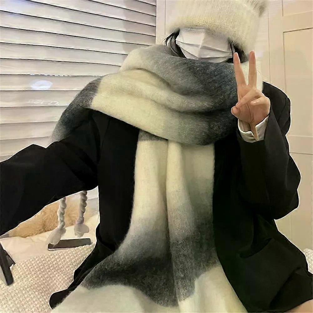 Mohair Scarf Winter Plaid Imitation Cashmere Scarves Shawl Women's Thicken Geometry Neckerchief Designer Bufanda Invierno