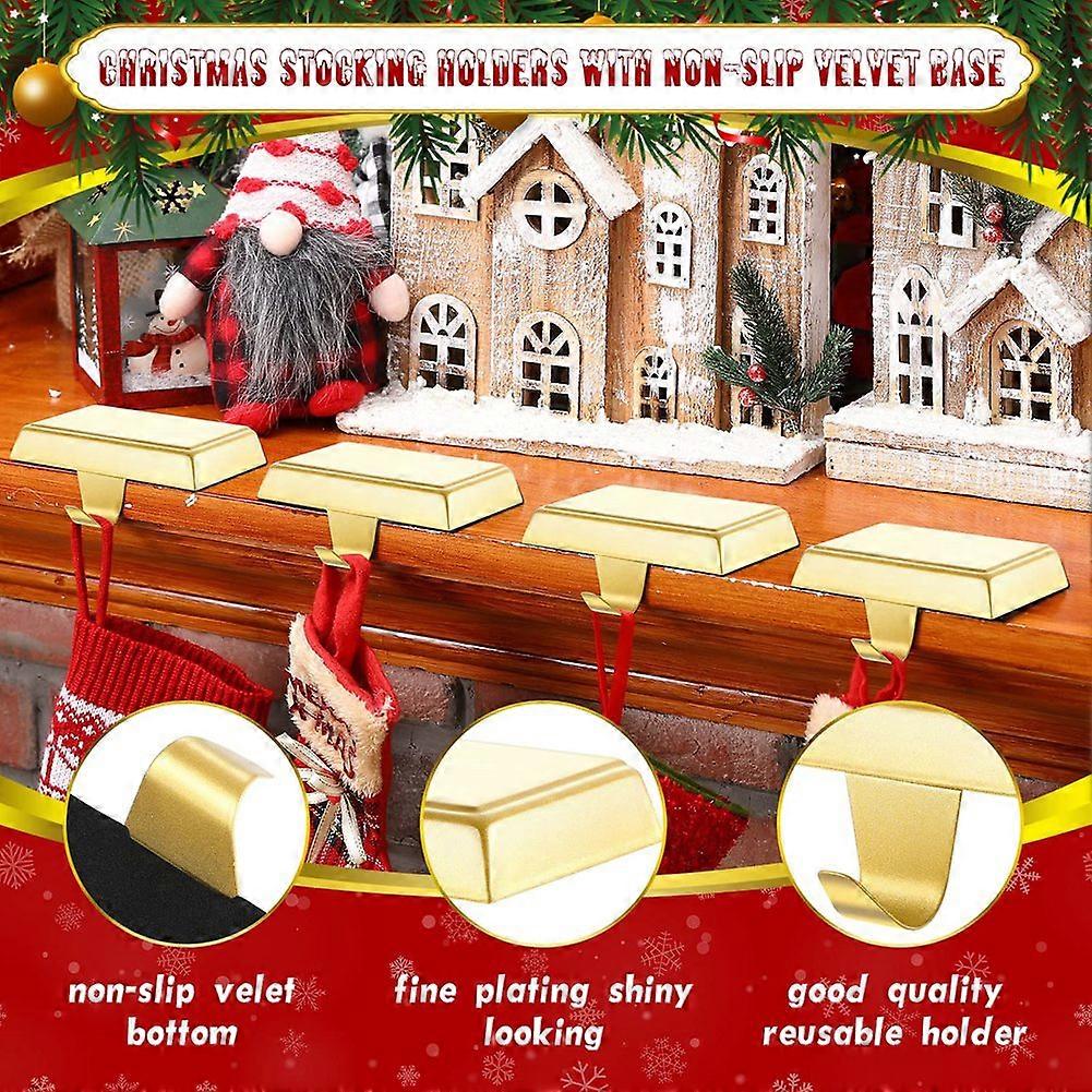 Set of 4 Metal Christmas Stocking Holders Stocking Hook Christmas Ornaments for Counter Tables Window Fireplace