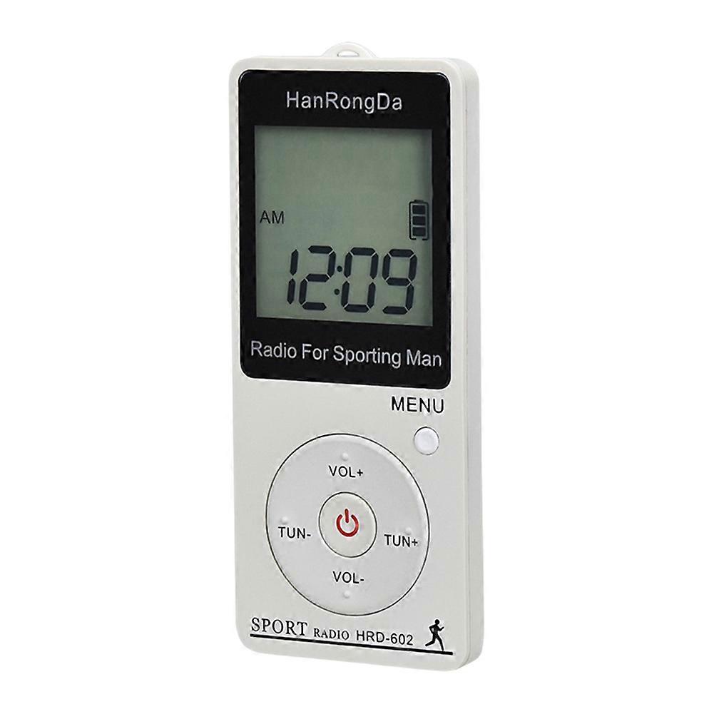 HANRONGDA FM AM Pocket Radio Rchargeable Sports Radio LED Display with Pedometer Earbuds Mini Portable Radio White