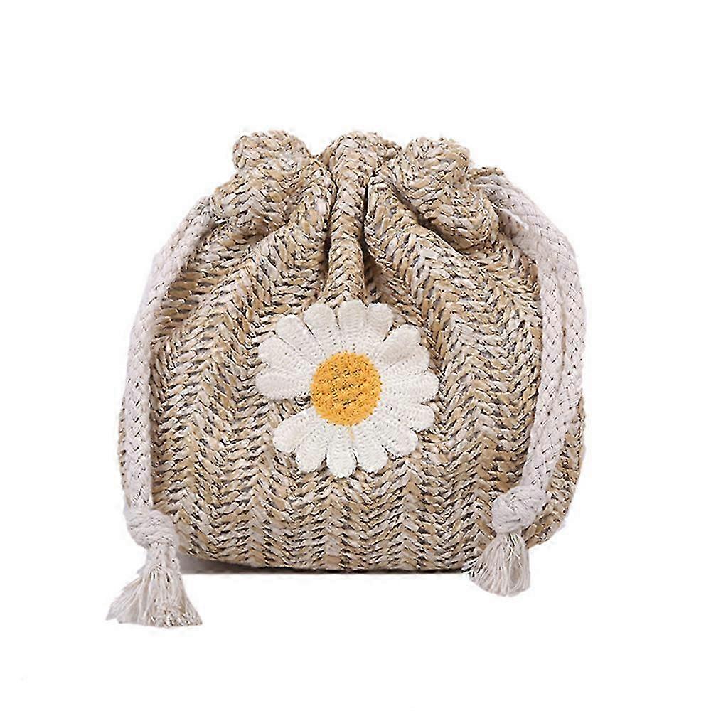 Drawstring Straw Beach Bags Flower Embroidery Bags Ladies Lace Crossbody Handbags For Travel25-26