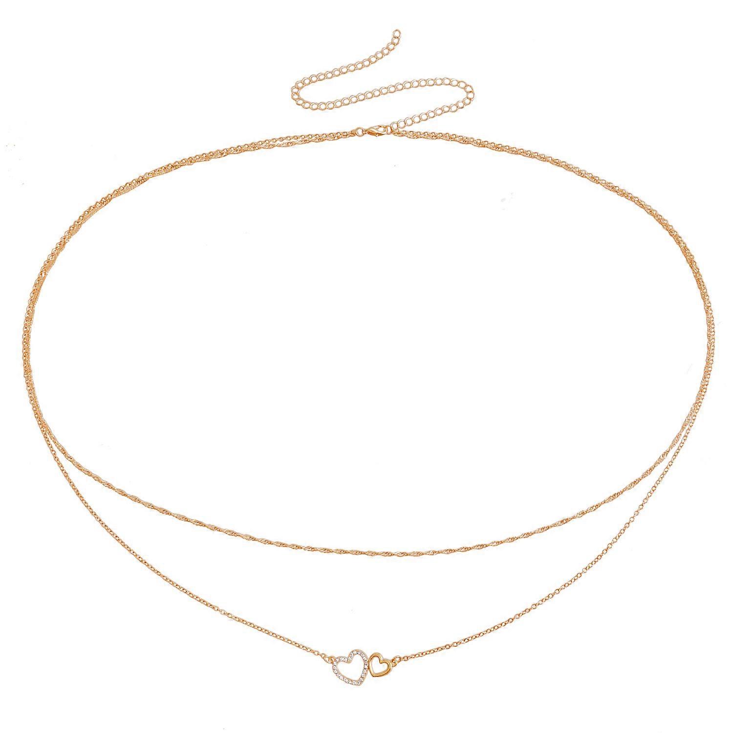 Bikini Navel Metal Chain Waist Ornament, Women's Double Layer Geometric Heart Pendant Elegant Body Jewelry