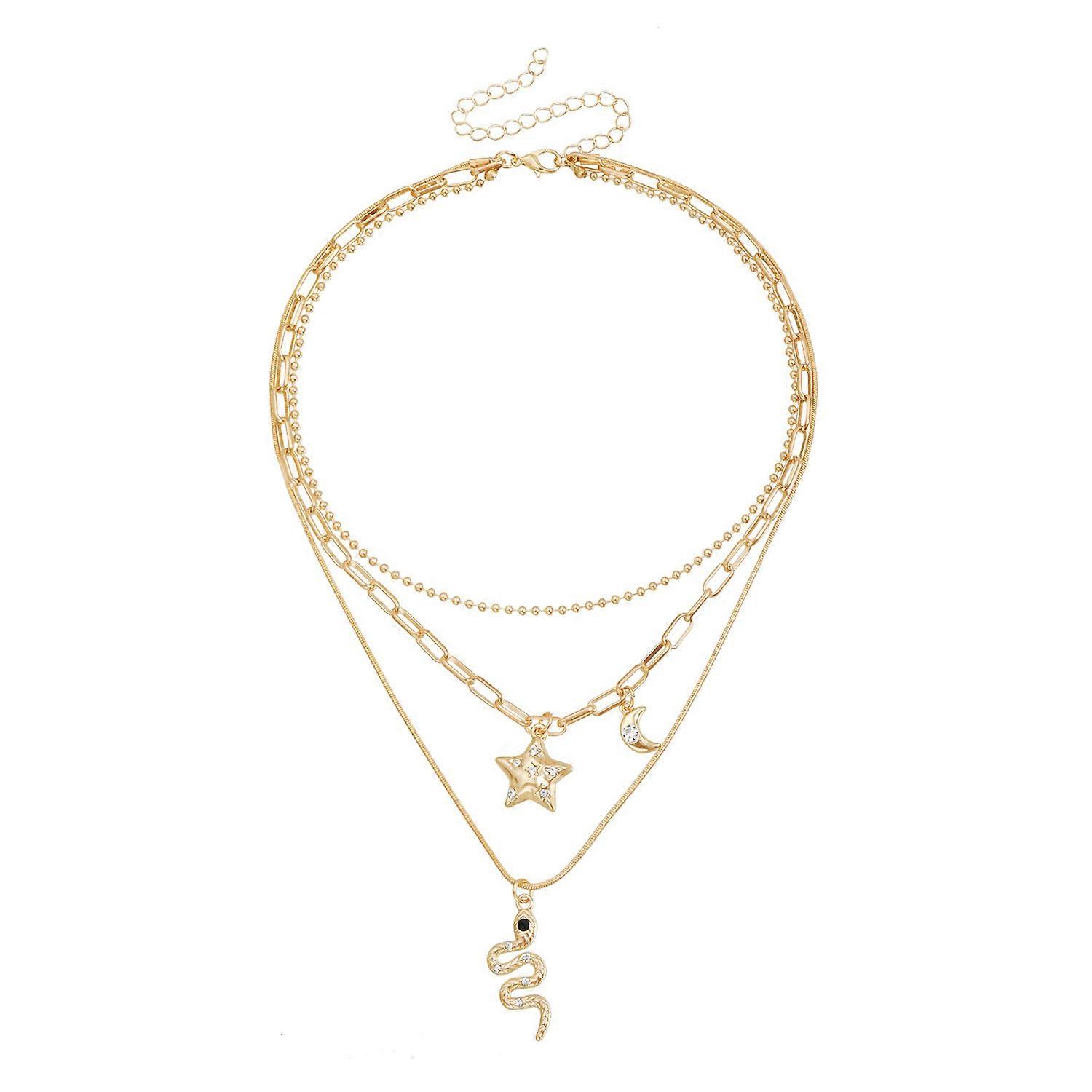 Necklace, Vintage Diamond-Studded Pentagram Moon Snake Pendant Necklace