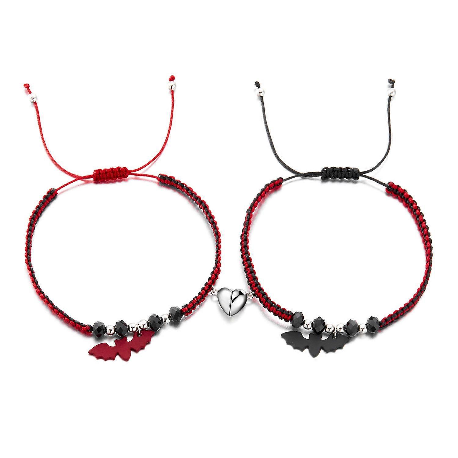 Halloween Spider Bat Braided Bracelets, 2pcs, Heart Magnetic Attraction Couple Bracelets