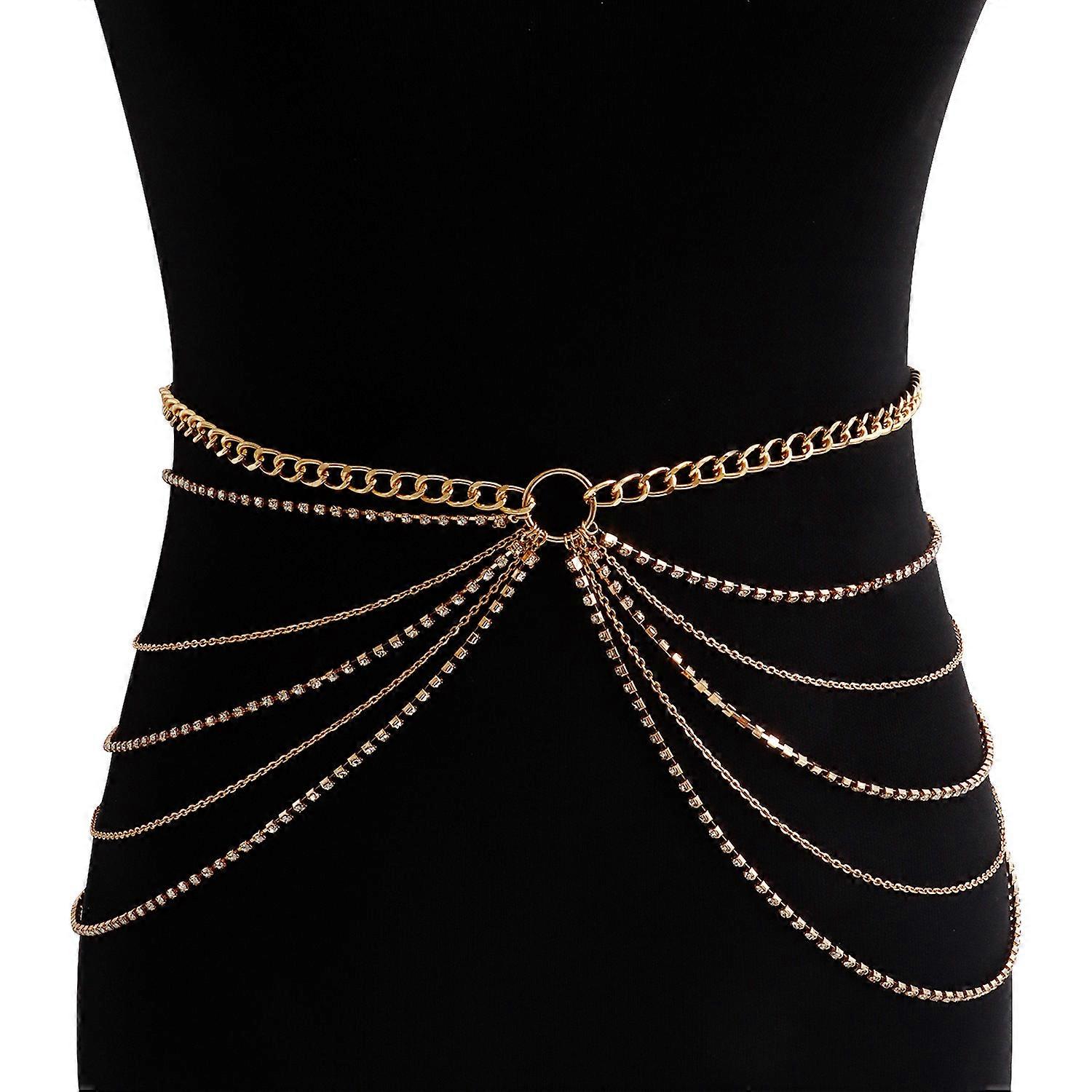Body Chain, Sexy Geometric U-shaped Exaggerated Multi-layer Rhinestone Tassel Waist Chain for Women