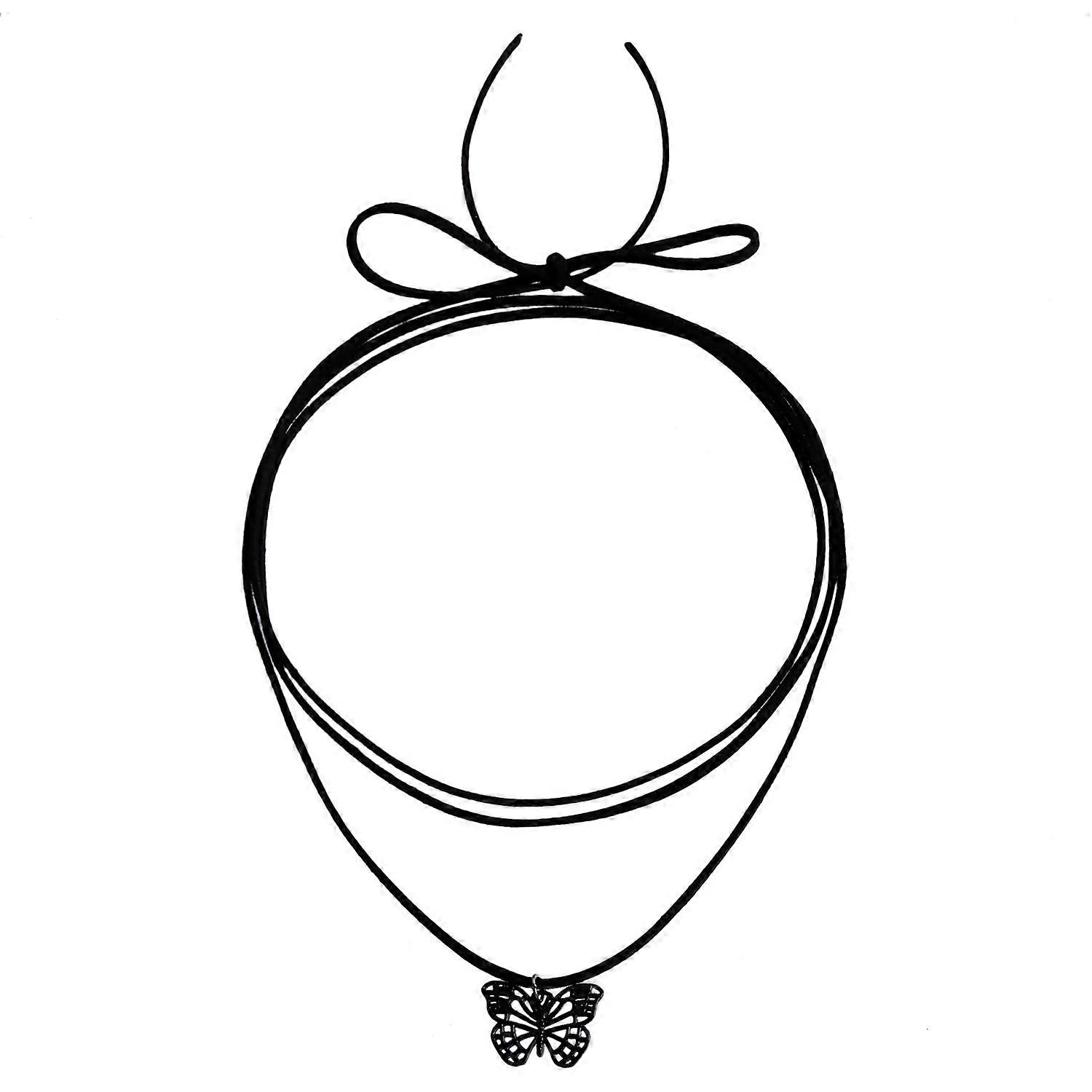 Necklace, Black Butterfly Pendant with Velvet Rope, Simple Drawstring Adjustable