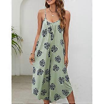 Women Spaghetti Strap Loose Jumpsuit Ankle Length Floral Printed Wide Leg U Neck Sleeveless Overalls