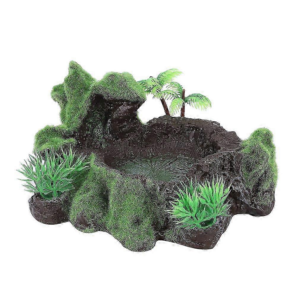 25-26 ZR-012 Resin Simulation Plants Fish Tank Lizard Reptile Feeding Bowl Tortoise Food Water Feeder Aquarium Ornament