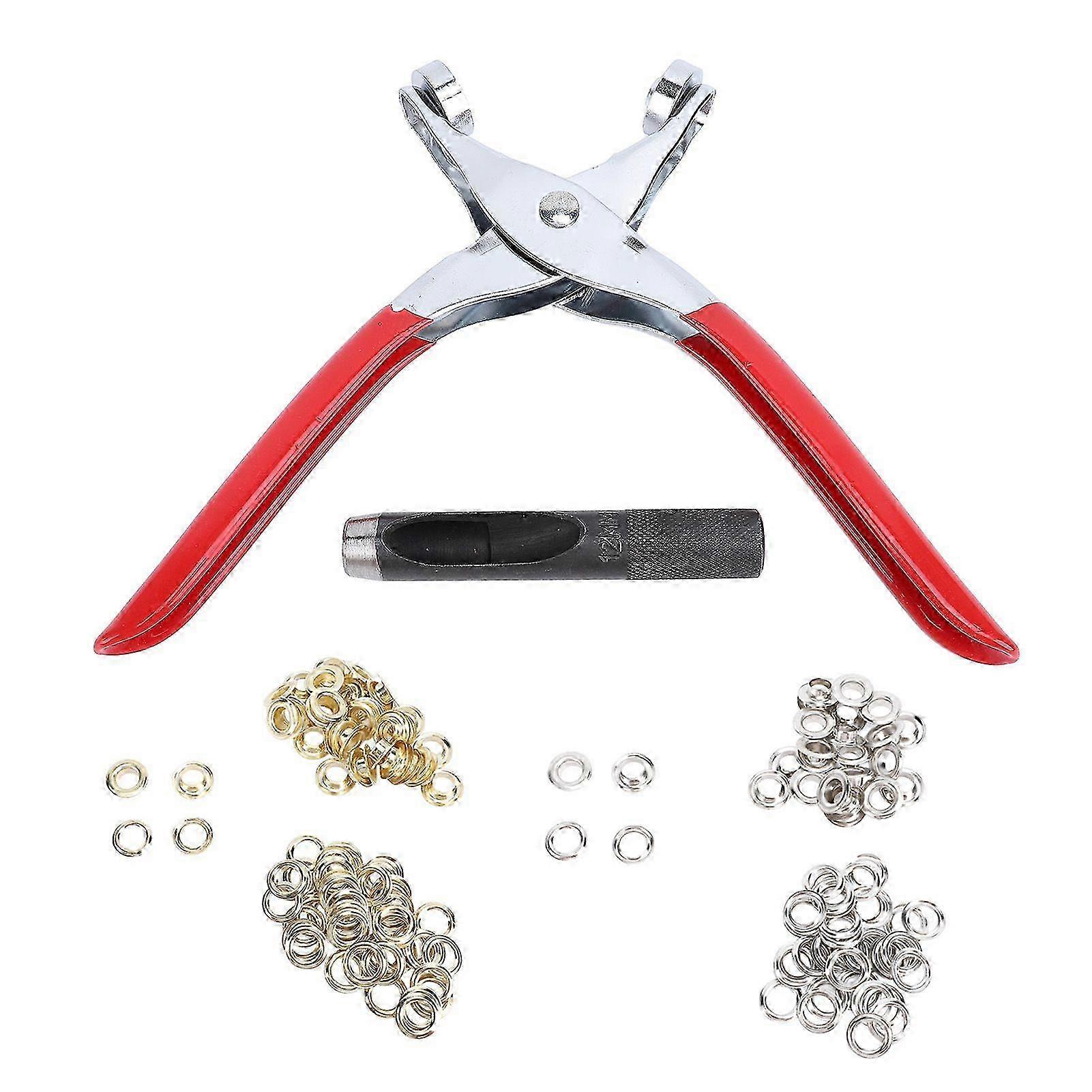 Feature:1. [Grommet Tool Kit] This set includes a 12mm grommet pliers, a hand punch, 160 silver and gold eyelets, and 160 silver and gold washers, allowing you to create or repair items with ease and revive your favorite belongings.2. [Lightweight Metal Eyelets] Suitable for decoration, not designed to withstand heavy tensile strength, ideal for rough applications such as leather, waterproof fabric, shoes, not suitable for delicate applications, too thin or too thick materials. Suggested thickness is 1 to 3mm.3. [Enhanced Securement] Adding washers to the eyelets helps reinforce the holes, ensuring a sturdy hold that is less likely to loosen.4. [Reliable Construction] The manual eyelet pliers feature a special lightweight design, crafted from alloy steel with cr plating, providing lasting performance for various crafting and repair projects.5. [Easy to Use] The hole punch pliers come with a comfort grip, plastic coated handle for effortless and ergonomic use, making your crafting experience efficient.Specification:Item Type: Grommet Tool KitMaterial: Alloy SteelPunch Diameter: Approx. 12mm or 0.5inWasher Inner Diameter: Approx. 12mm or 0.5inWasher Outer Diameter: Approx. 21mm or 0.82in.Package List:1 x Eyelet Pliers160 x Silver Eyelets160 x Silver Washers160 x Gold Eyelets160 x Gold Washers1 x Hole PunchNote:1. Please confirm the size before purchasing.2. Please pay attention to the direction of the eyelets and pliers, incorrect direction can damage the eyelets.3. The bottom of the eyelets is a flowering design, which is not a flawed effect. If applied to thin materials, there may be sharply protrusions after completion. You can gently tap it with a hammer to flatten it out.