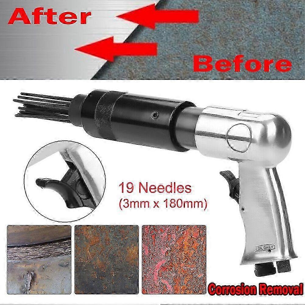 25-26 Air Pneumatic 19 Needle Scaler Pistol Grip Rust Paint Slag Corrosion Removing Deburring Tool