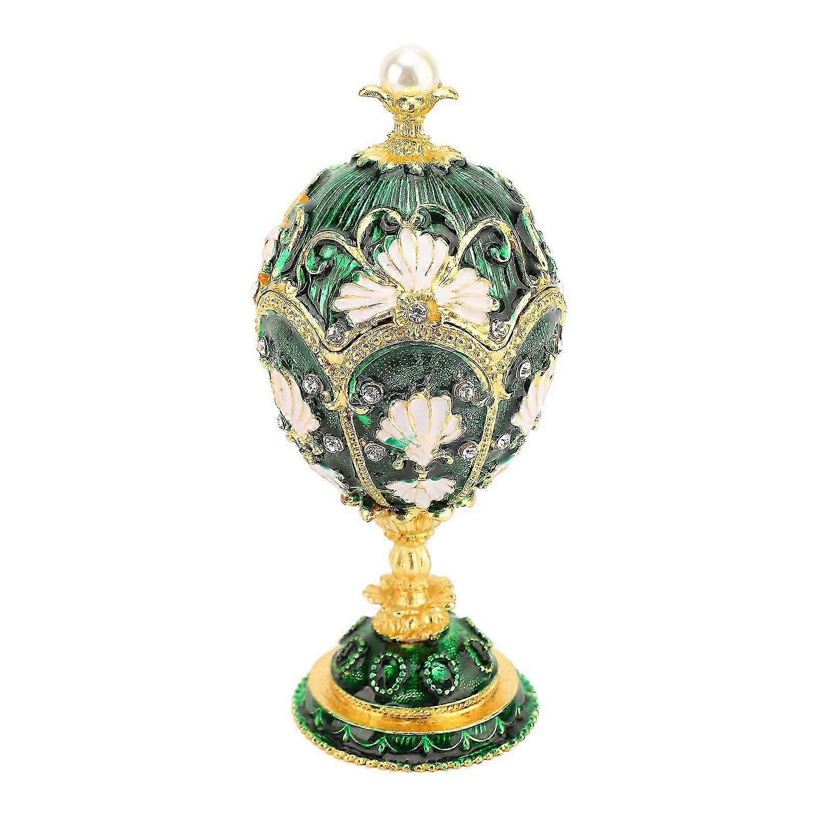25-26 Egg Style Trinket Box Hinged Enamelled Rhinestones Multifunctional Home Decor Alloy Vintage Jewelry Box Gold Green
