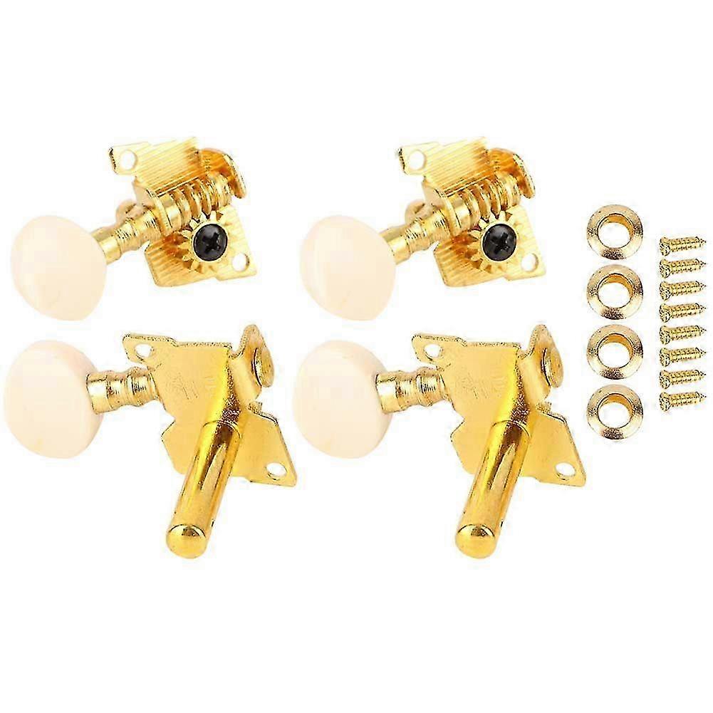 25-26 2L 2R Gold Ukulele String Tuning Pegs Locking Tuners With White Buttons