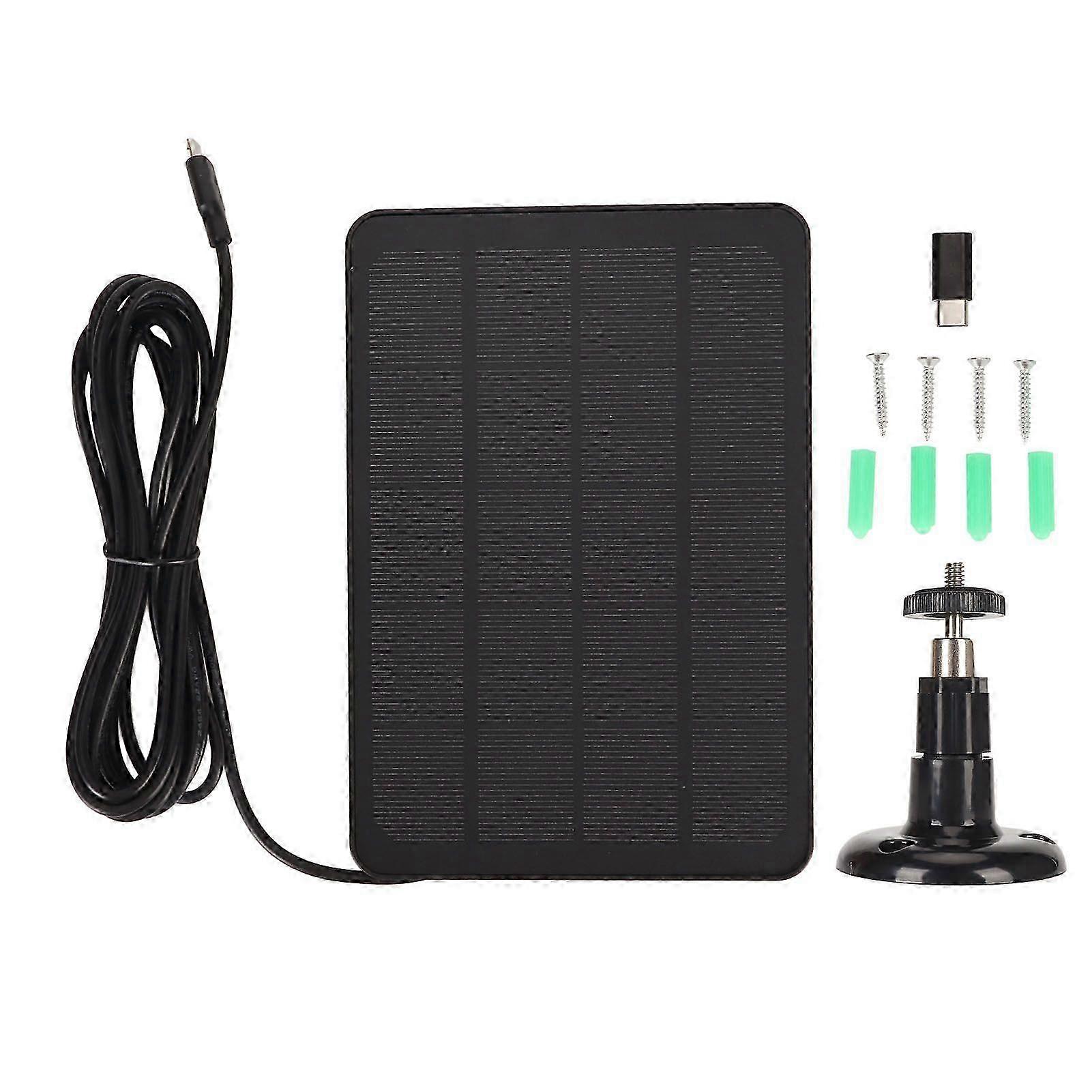 25-26 Camera Solar Panel IP65 Waterproof Camera Charger 5V 4W High Efficiency for Micro USB C Black