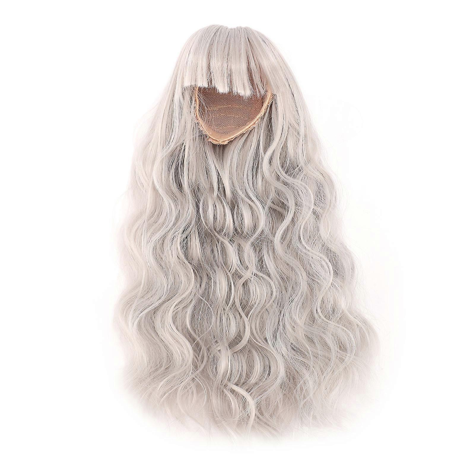 Curly Straight Bang Long Hair DIY Smoothly Replacement Wig for 7.3‑8.3in Head Circumference Doll