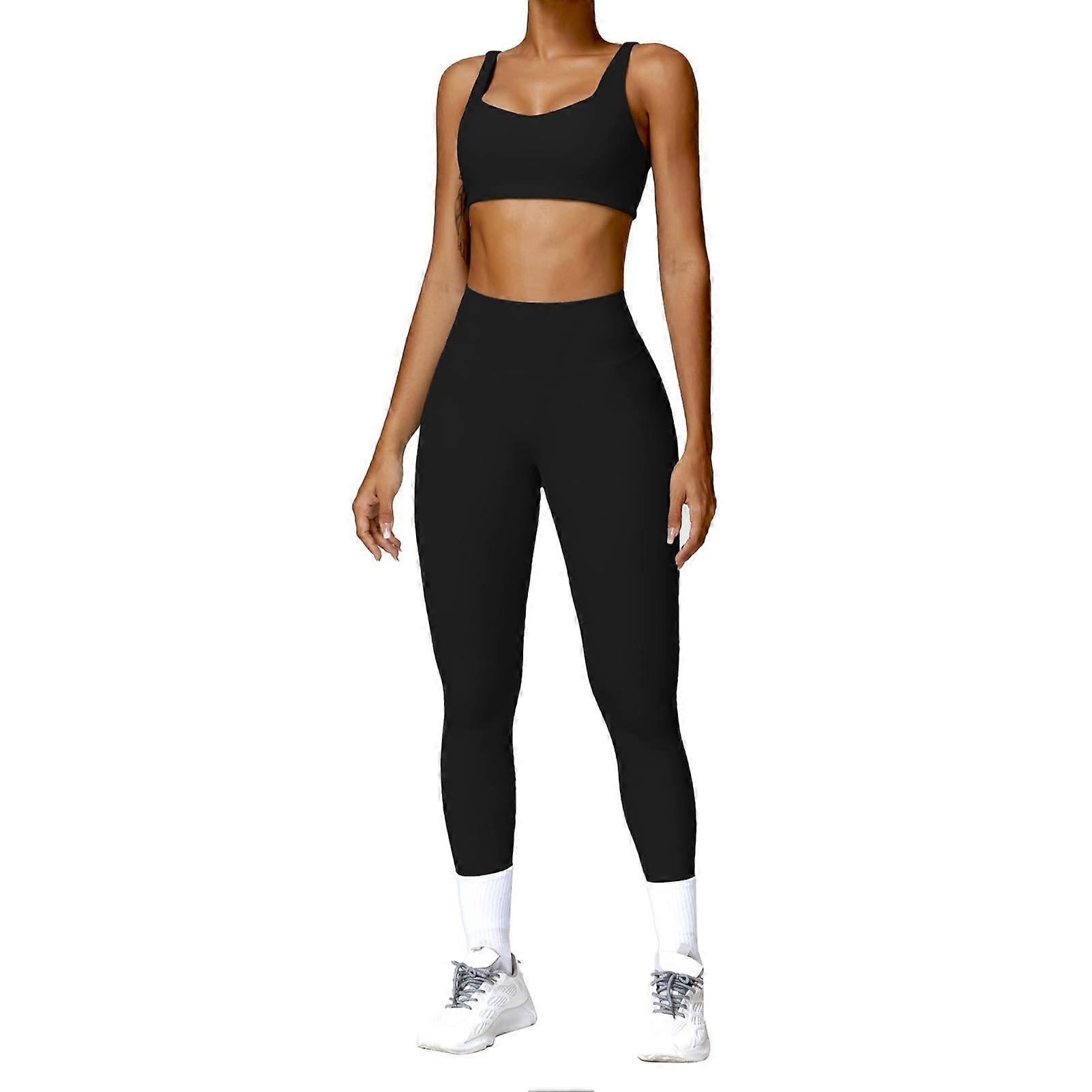 Women Set High Waist Leggings U Neck Bra Sweat Wicking Tummy Control Two Piece Workout Outfits