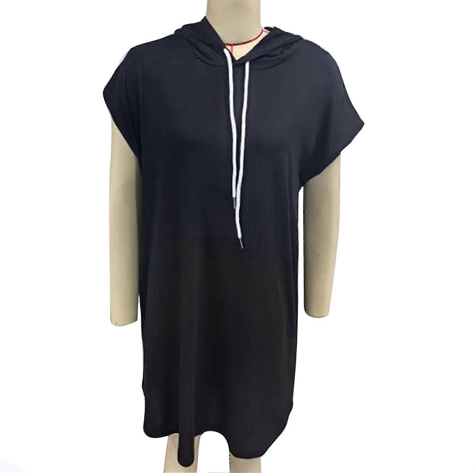 Women Sweatshirt Dress Short Batwing Sleeve Loose Fitting Hooded Drawstring Pullover Top Dress