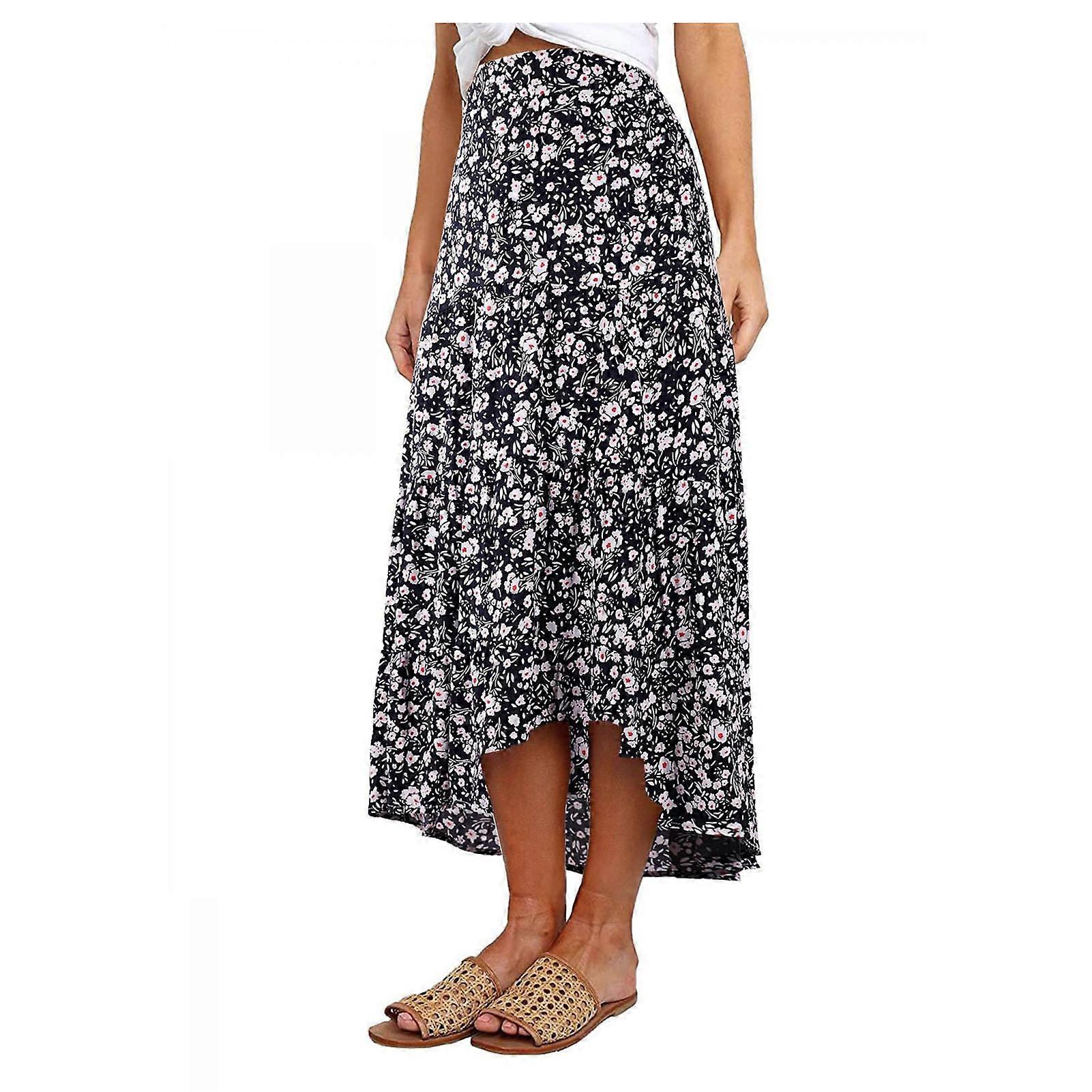 Floral Print Midi Skirt Ruffle Stitching A Line High Waisted Flower Asymmetrical Skirt for Women