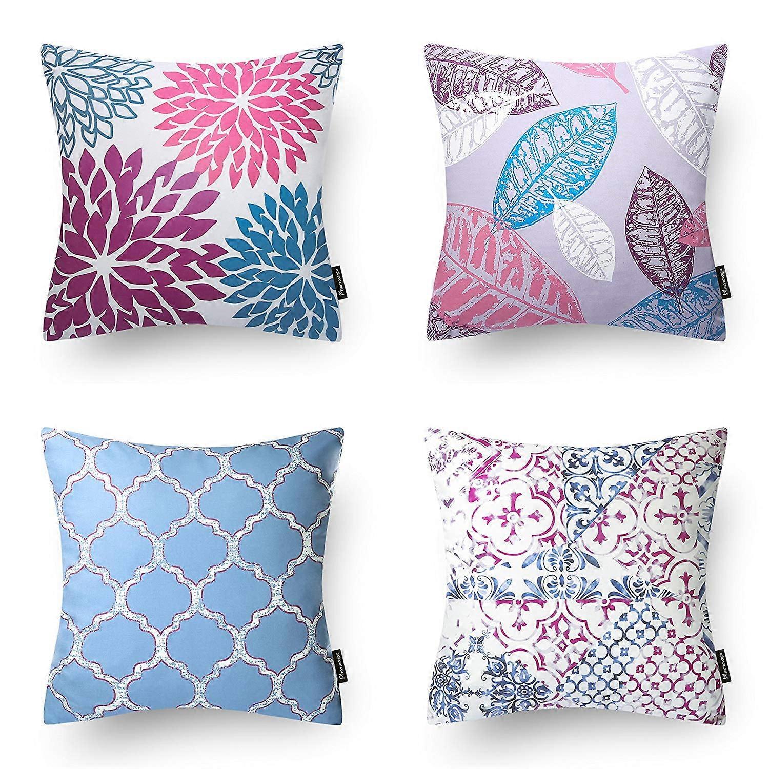 Phantoscope New Living Series Printing Square Cusion for Couch Decorative Throw Pillow, 18" x 18", Purple/Blue, 4 Pack