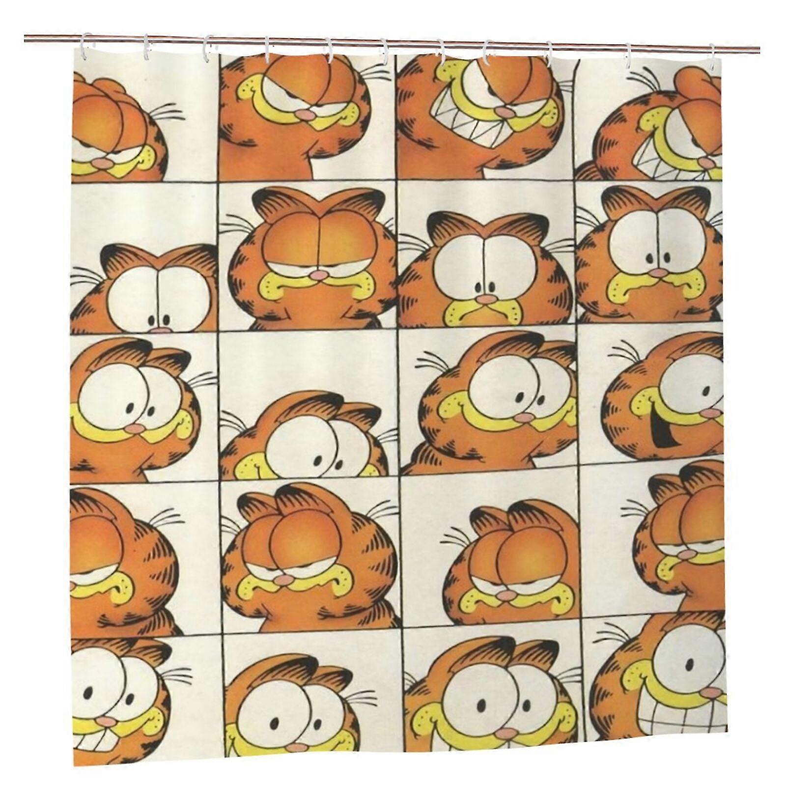 Garfield Cartoon Shower Curtain 72" X 72" Anime Bathroom Decor With 12 Hooks Waterproof Washable Polyester Fabric For Bathroom Shower