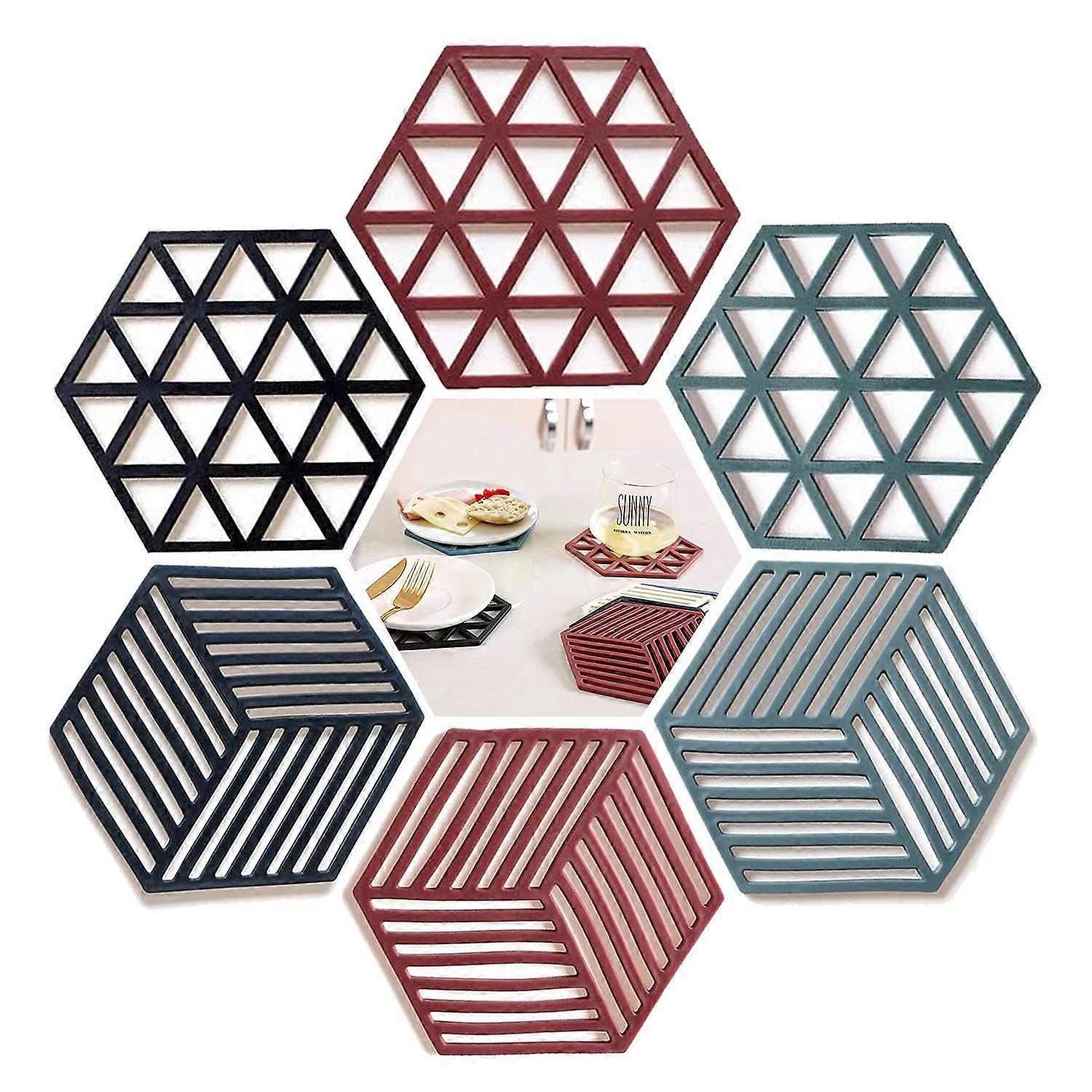 Suitable for kitchen tables warming mat spoon holder Silicone table mat cooking and eat non-slip pot mat and coaster set of 6 pieces with tripod