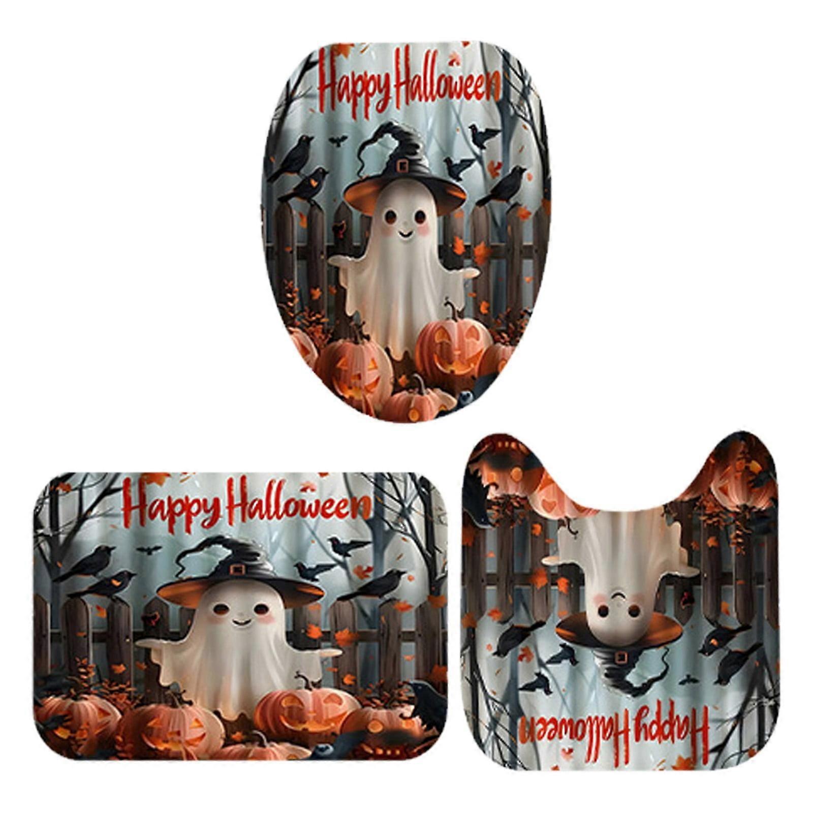 Halloween Shower Curtain Set with Non Slip Rugs, Bath Mat & Toilet Lid Cover | Compatible with XIUH