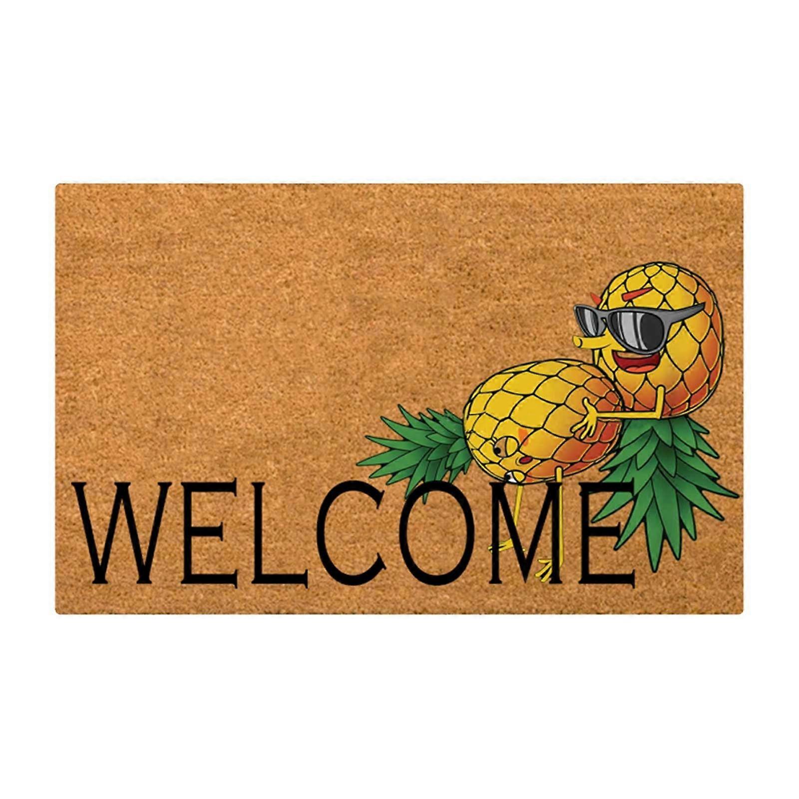Fun Pineapple Letter Printed Door Mat, 1PC Polyester Outdoor Entrance Porch Mat, Slip-Resistant Front Door Carpet, Compatible with XIUH Home Textile