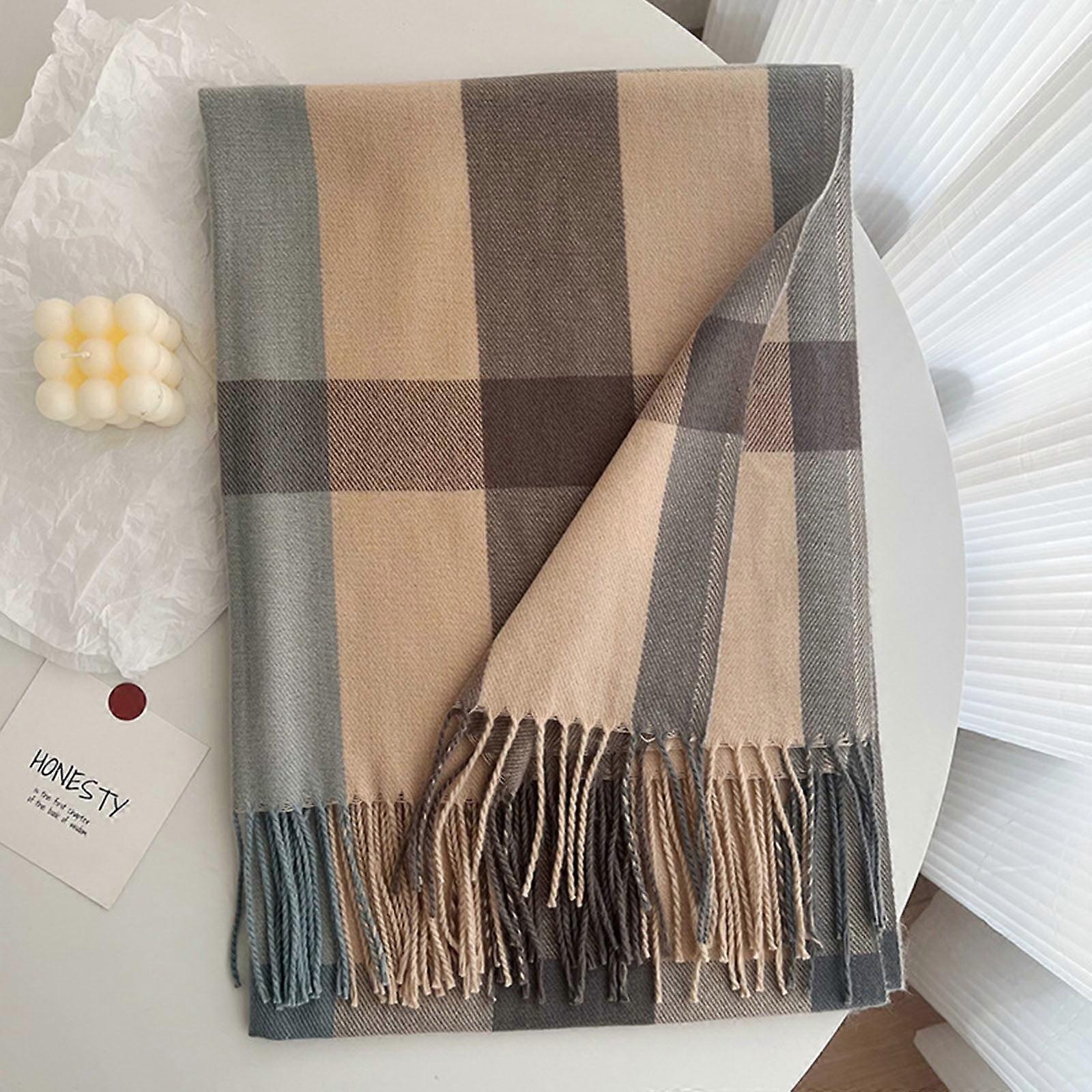 Hamky Shawl Wraps for Women, Scarf for Women, Fall Winter Plaid Scarf with Tassels, Warm Soft Chunky Blanket Wrap, Grey