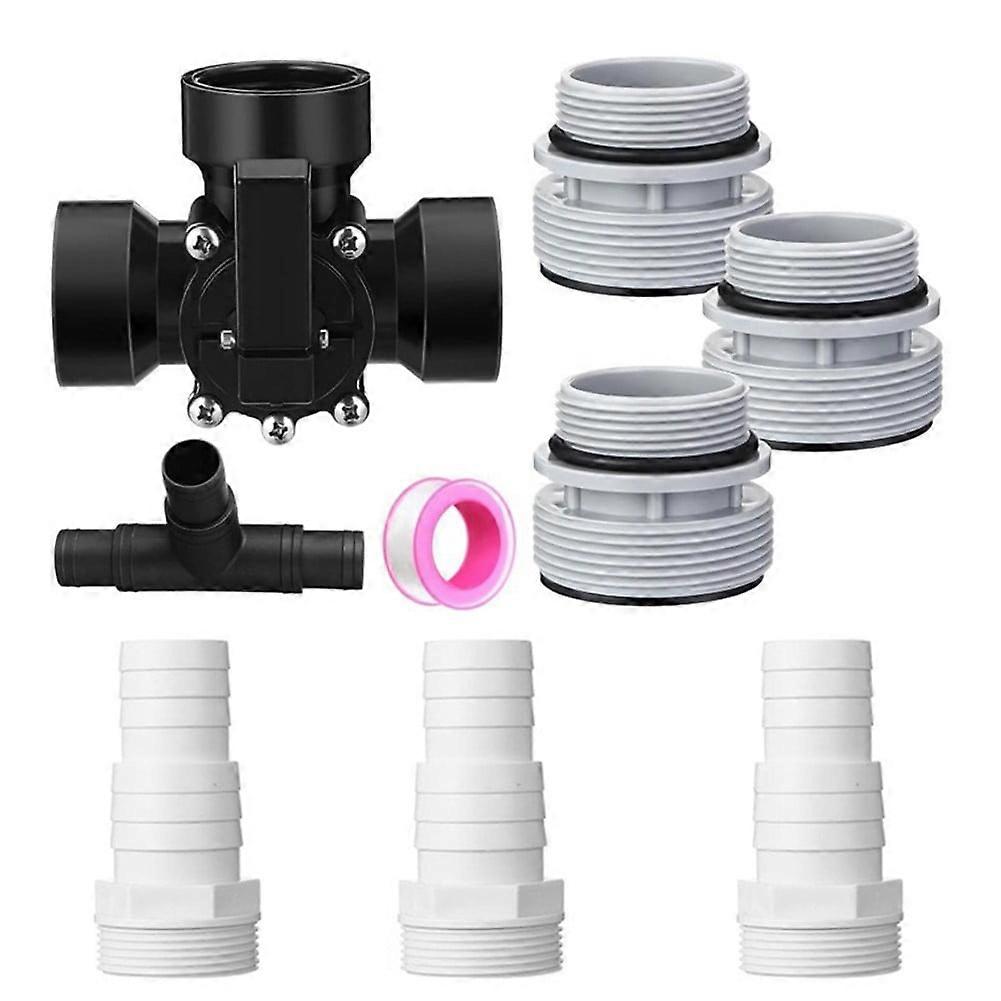 Features: *Package Information: This swimming pool diverter valve kit includes a 3-way valve inner thread, a valve fitting kit, and 2 pool filter converters with 2 O rings. It is designed for convenient swimming pools and replacements. *Practical Pool Diverter Valve: This hose adapter kit is specifically designed for pool applications and is compatible with above-ground pool pumps and filters. It offers convenience and easy disassembly. *Reliable Material: Made primarily of ABS and rubber material, this valve filter hose conversion kit ensures safety and durability. It features an adjustable stop function for controlling the flow rate, making it suitable for spas and swimming pools. *Fine Workmanship: The valve hose adapter with hose clamps is exquisitely crafted, ensuring durability and strength. It can be used for pool fittings and connectors, and it is resistant to breaking or fading, guaranteeing long-lasting performance. *Wide Application: This swimming pool diverter can be used in various occasions. It is the perfect equipment for connecting above-ground filter hoses to pool filter pumps, and it is suitable for 1 1/4'' or 1 1/2'' standard entrance and exit. Specifications: *Product Name:3 Way 1.5" Swimming Pool Diverter Valve *Material:ABS and rubber *Size:as shown *Color:white+black *Fitment:Above ground pool pumps, filters, spas, and swimming pools *Number of Pieces:9 Package Content: 1*Three-Way Diverter Valve 3 *Hose Adapter 3 *4560 Hose Adapter 1 *Three-way Hose Adapter 1 *Raw Tape Note: 1. The real color of the item may be slightly different from the pictures shown on website caused by many factors such as brightness of your monitor and light brightness. 2. Please allow slight manual measurement deviation for the data. Good Product Functionality:Our products have good function and reliable to use Reliable Product Quality :Our products made from quality materials. Fast Delivery:We will ship it ASAP,when you place the order Good Customer Service:We provide perfect customer service, you can buy with confidence. Product service: If you have any questions about our products, you can feel free to contact us.
