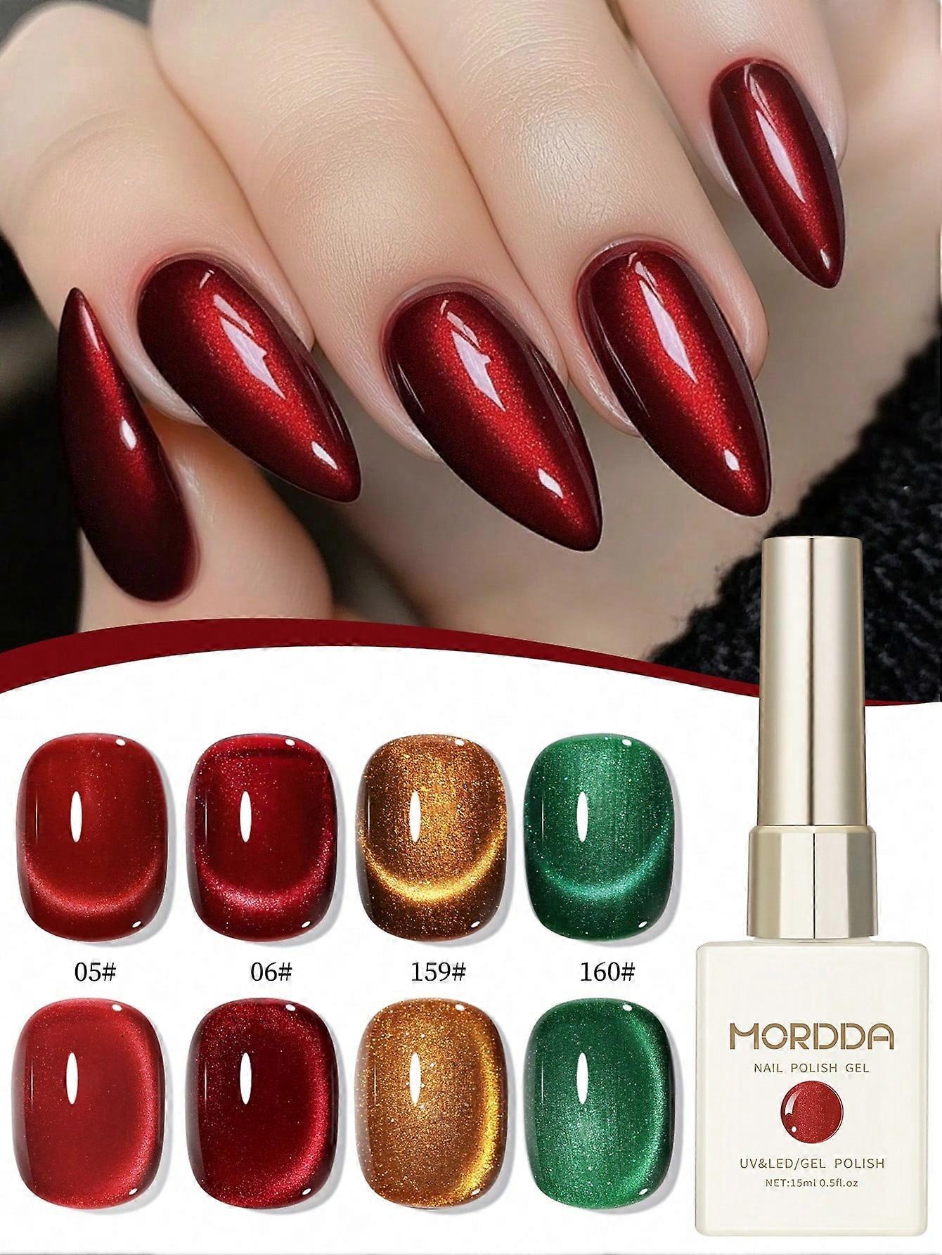 4pcs 15ml Red Green color Cat eye Nail Gel Soak Off UV Gel Nail Polish Varnish ,Quick Drying Under UV/LED Ligh