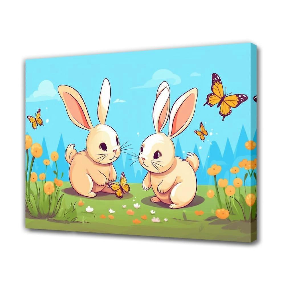 Adorable Cartoon Rabbits on Meadow Canvas Poster, 8x12in - Cute Bedroom & Office Decor Gift (Frame-style)