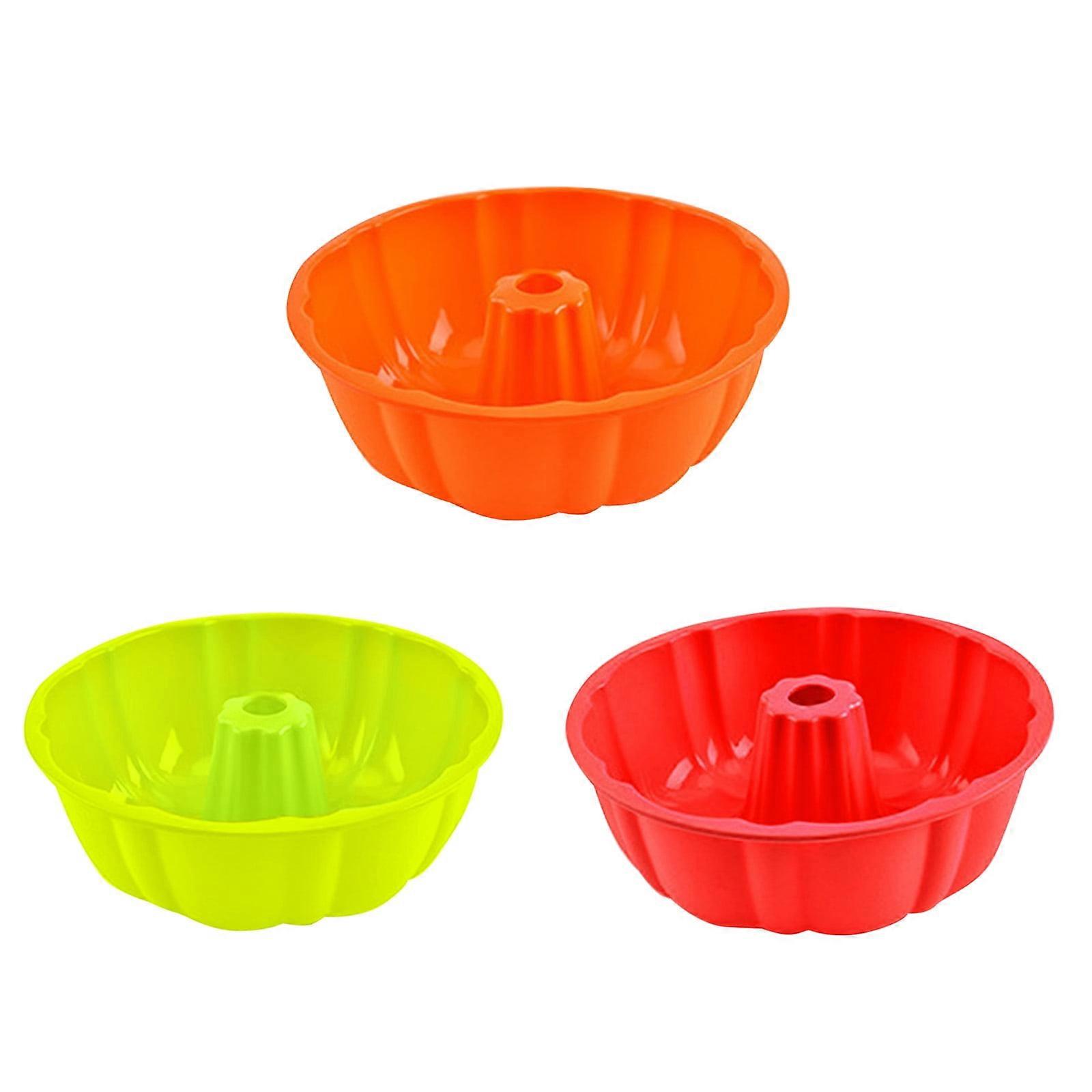 Tkrady 3Pcs Nonstick Silicone Cake Pans, Quick Release Baking Molds for Cake, Jello, Bread Compatible with Standard Ovens (Orange, Red, Green)