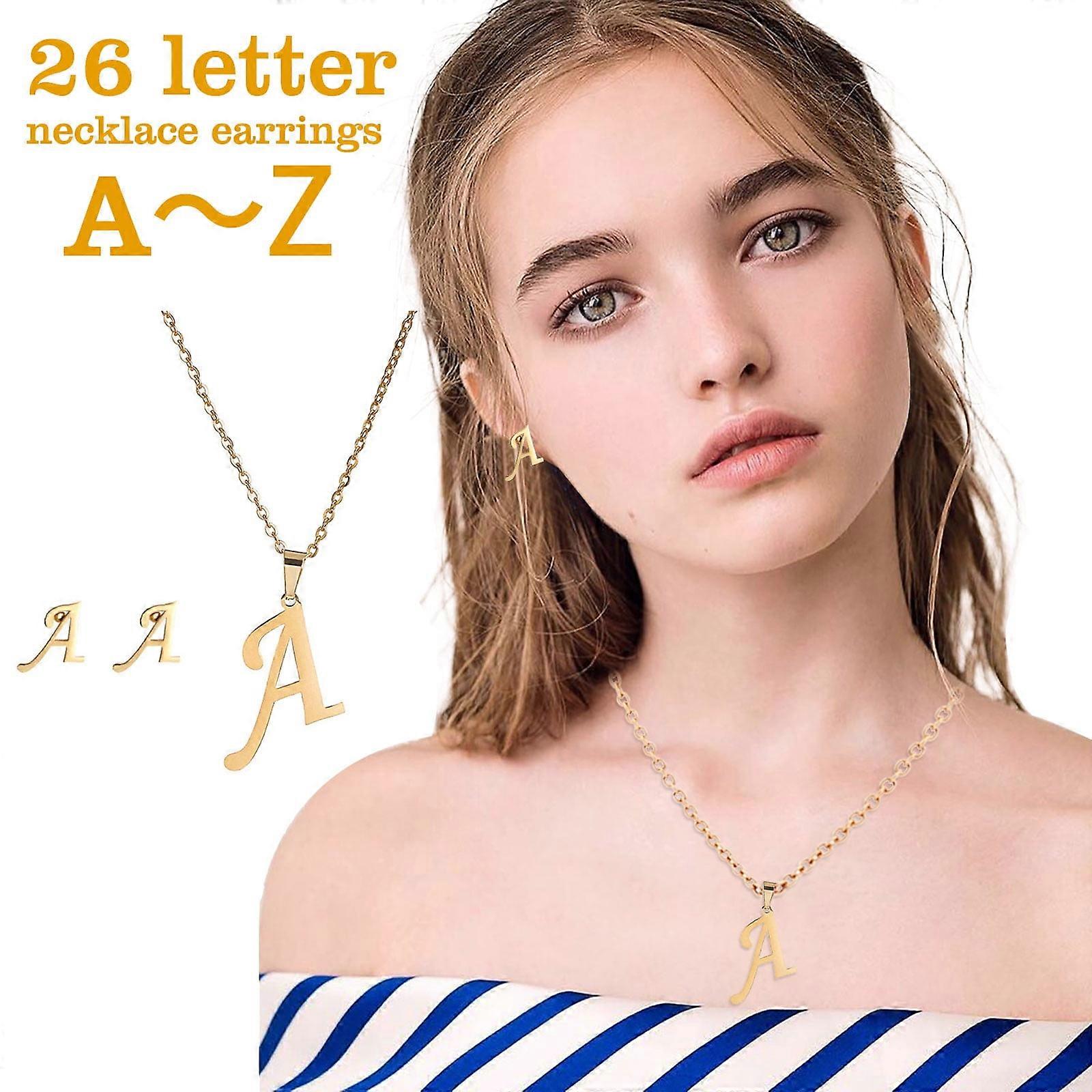 Jacenvly Mother's Day Clearance: 26 Letter Name Chain Pendant Necklace & Earring Set, Women Gift, Mother's Day Decoration