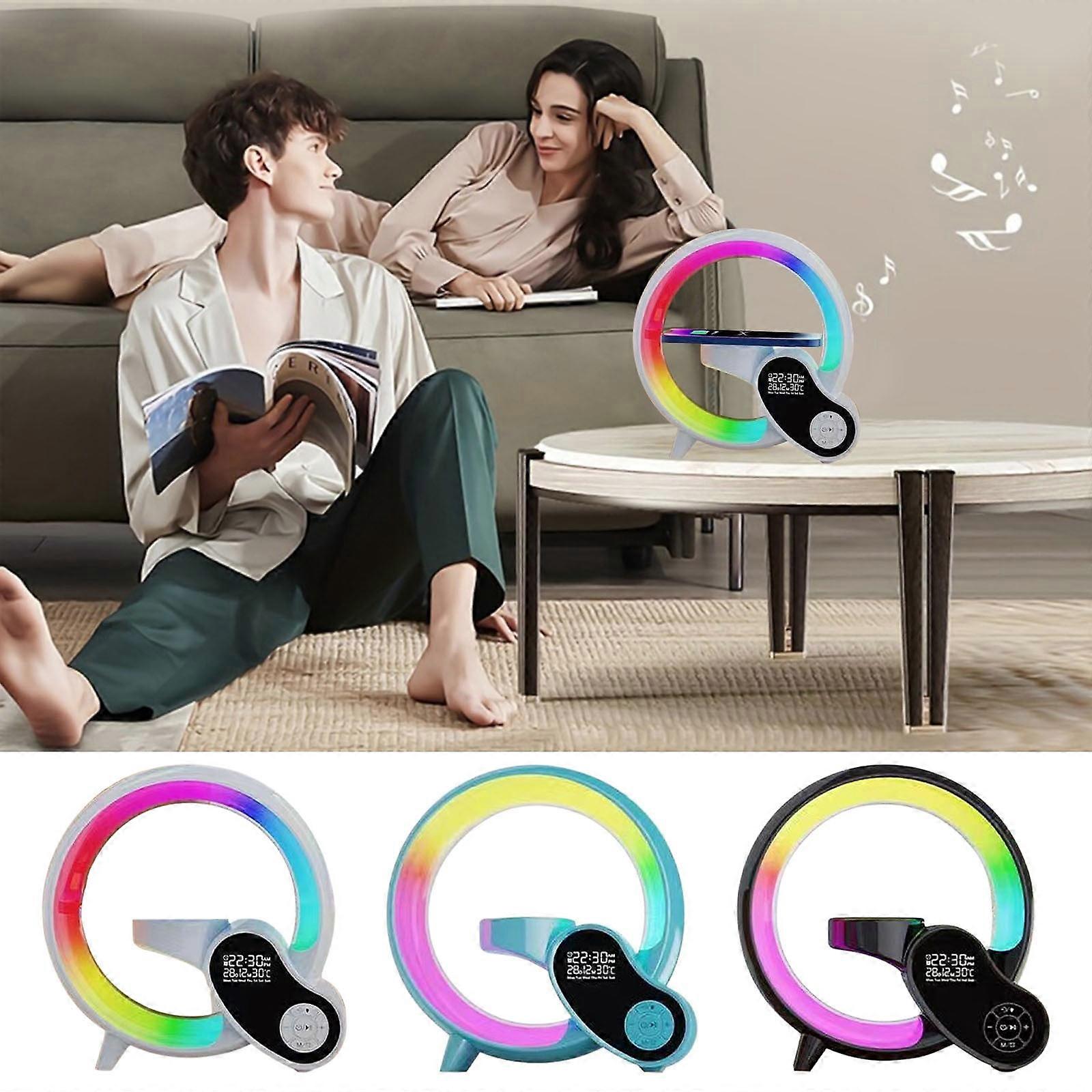 Jacenvly Portable Bluetooth Speaker with LED Light, Alarm Clock & Night Light - White, Compatible with App Control
