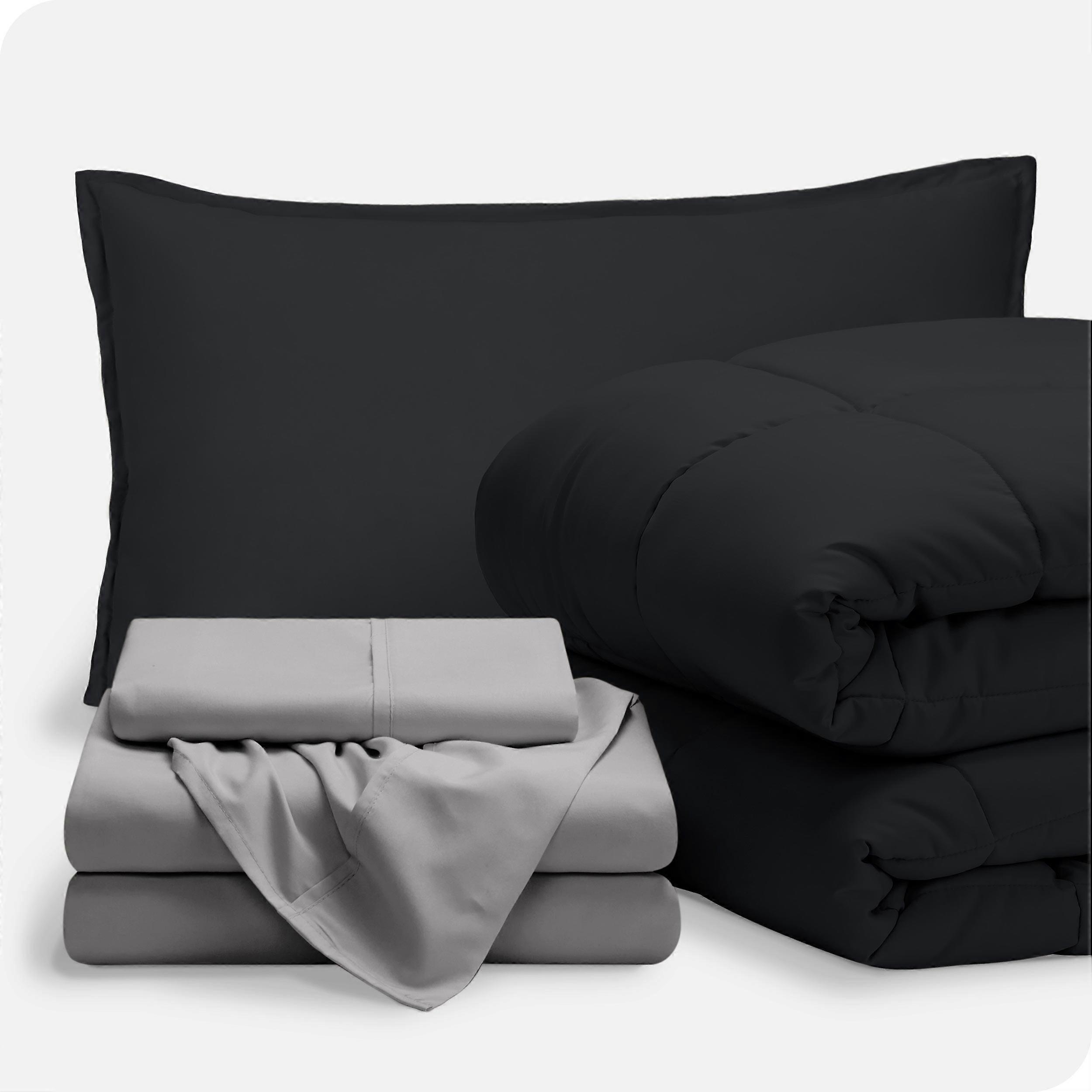 Bare Home 5-Piece Bed-in-a-Bag - Twin, Black with Light Gray Sheet Set