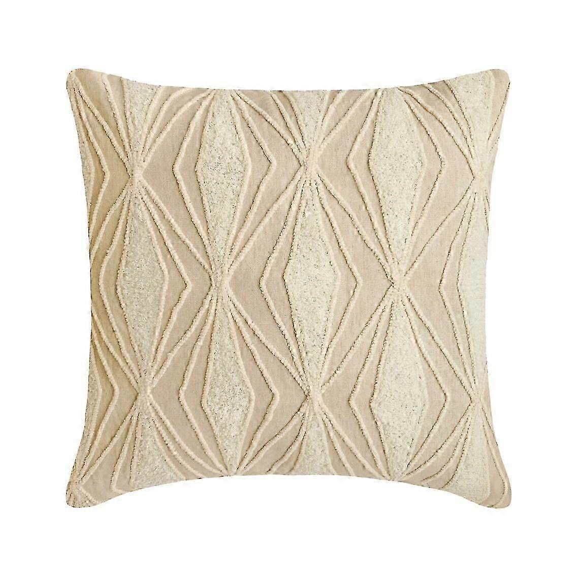 Beige Linen Boucle Throw Pillow Cover with Geometric Embroidery in Contemporary Style